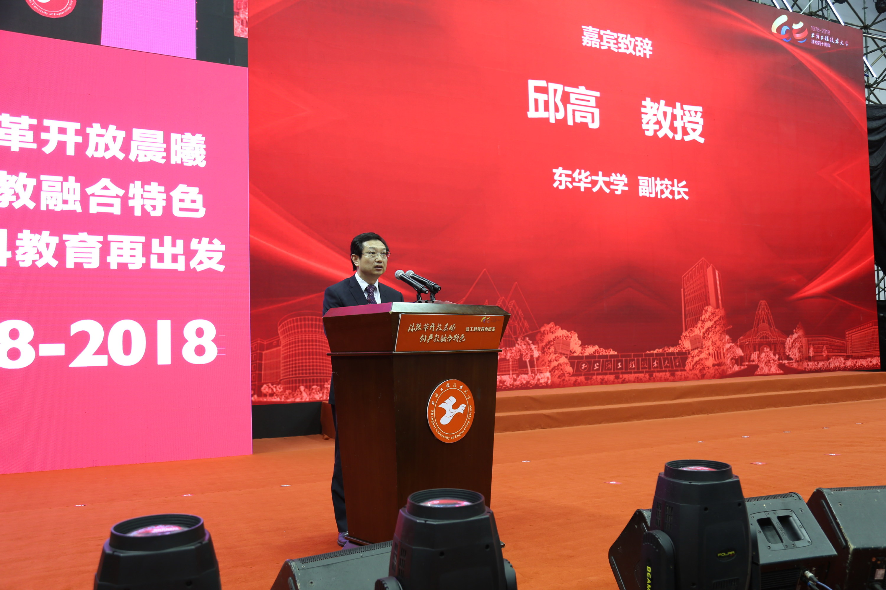 四十载勤业惟实、玉汝于成。东华大学副校长邱高教授代表国内兄弟院校向大会致辞;瑞典哈姆斯塔德大学校长斯蒂芬·黄教授代表国际友好合作高校向大会致辞。上海久有股权投资基金管理有限公司董事长、首席执行官刘小龙校友作为校友代表,城市轨道交通学院院长柴晓冬教授作为教师,航空运输学院学院学生宋华伟代表全体在校生,分别祝福学校四十岁生日快乐。