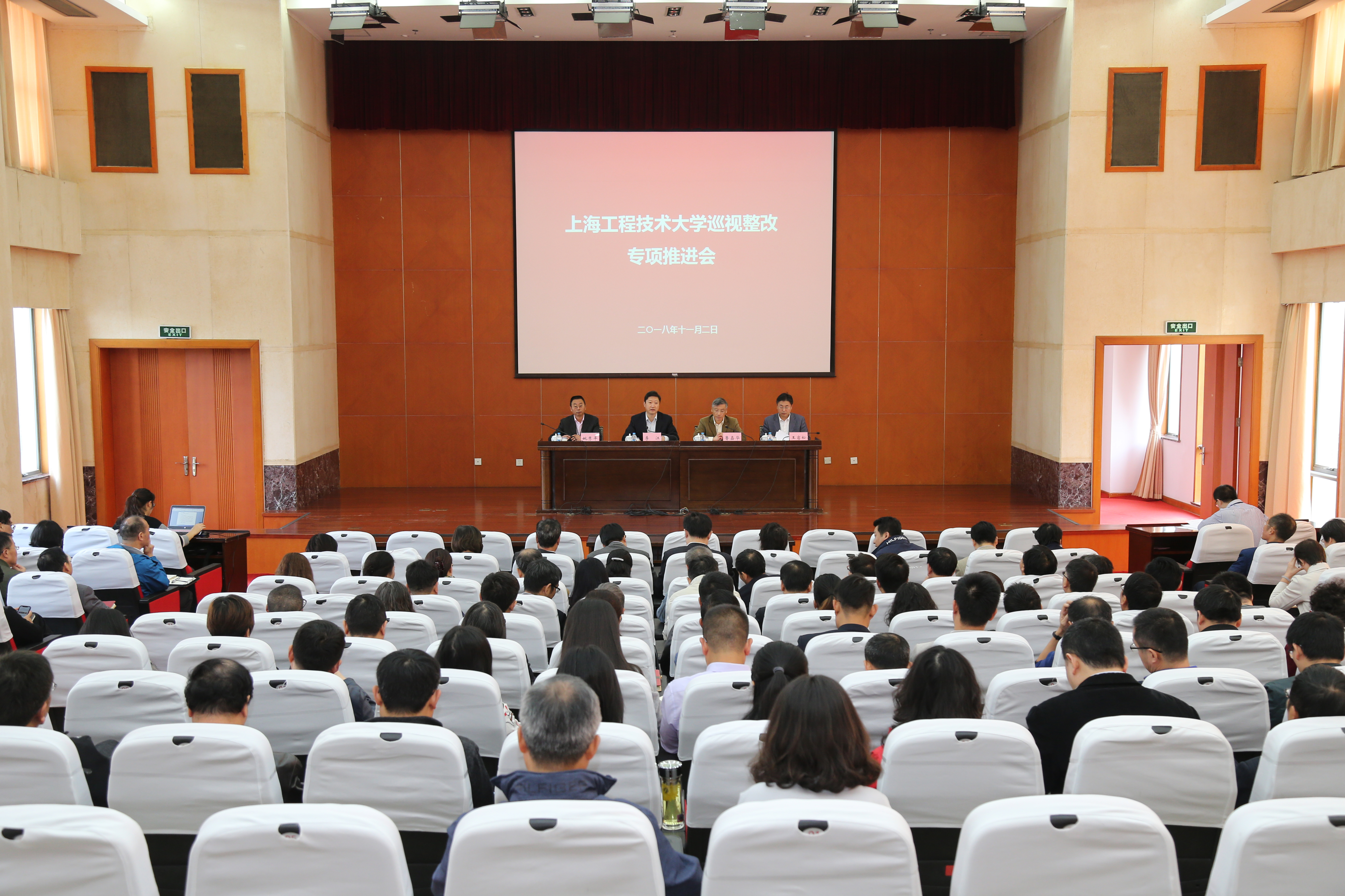 11月2日,巡视整改工作专项推进会在行政楼B301会议室召开。校党委书记李江、党委副书记鲁嘉华、副校长姚秀平、王岩松出席会议,全体中层干部参会。