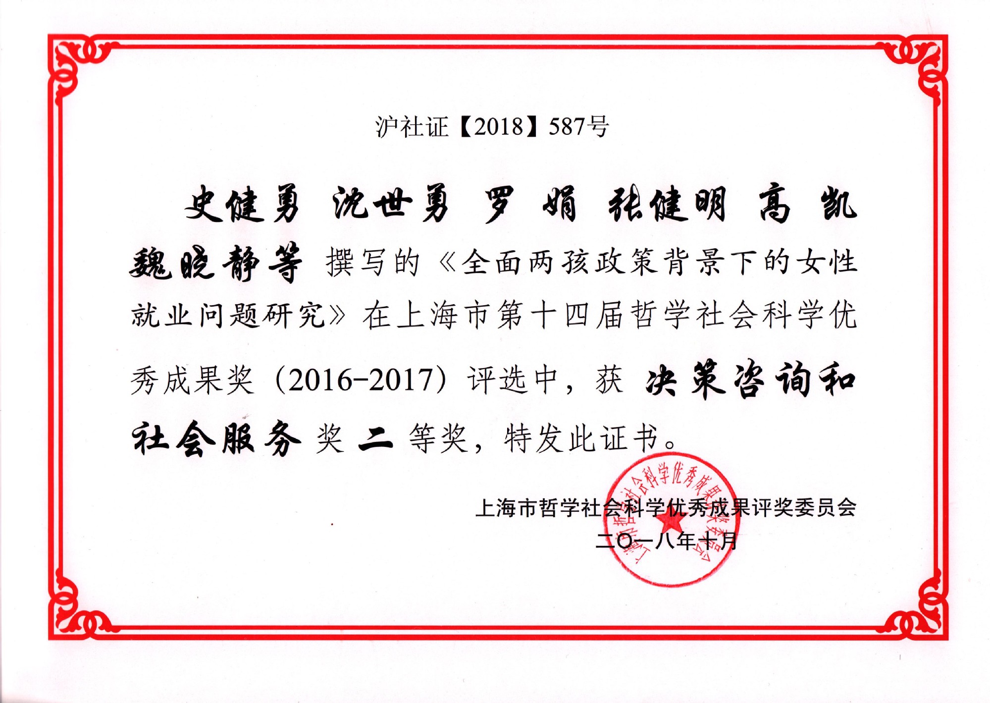上海市哲学社会科学优秀成果奖是在中共上海市委领导下,市政府委托开展的本市哲学社会科学最高奖项,每两年评选一次。经上海市哲学社会科学优秀成果评奖委员会评审,全市共有607项申报成果获上海市第十四届哲学社会科学优秀成果奖,其中,中国特色社会主义理论奖125项、学科学术奖438项、决策咨询与社会服务奖40项。