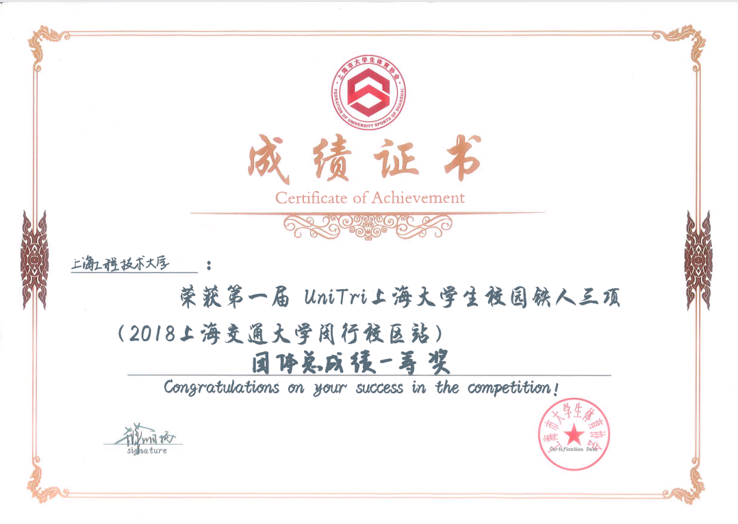 校长跑队在“Uni Tri上海大学生校园铁人三项”比赛中获团队一等奖