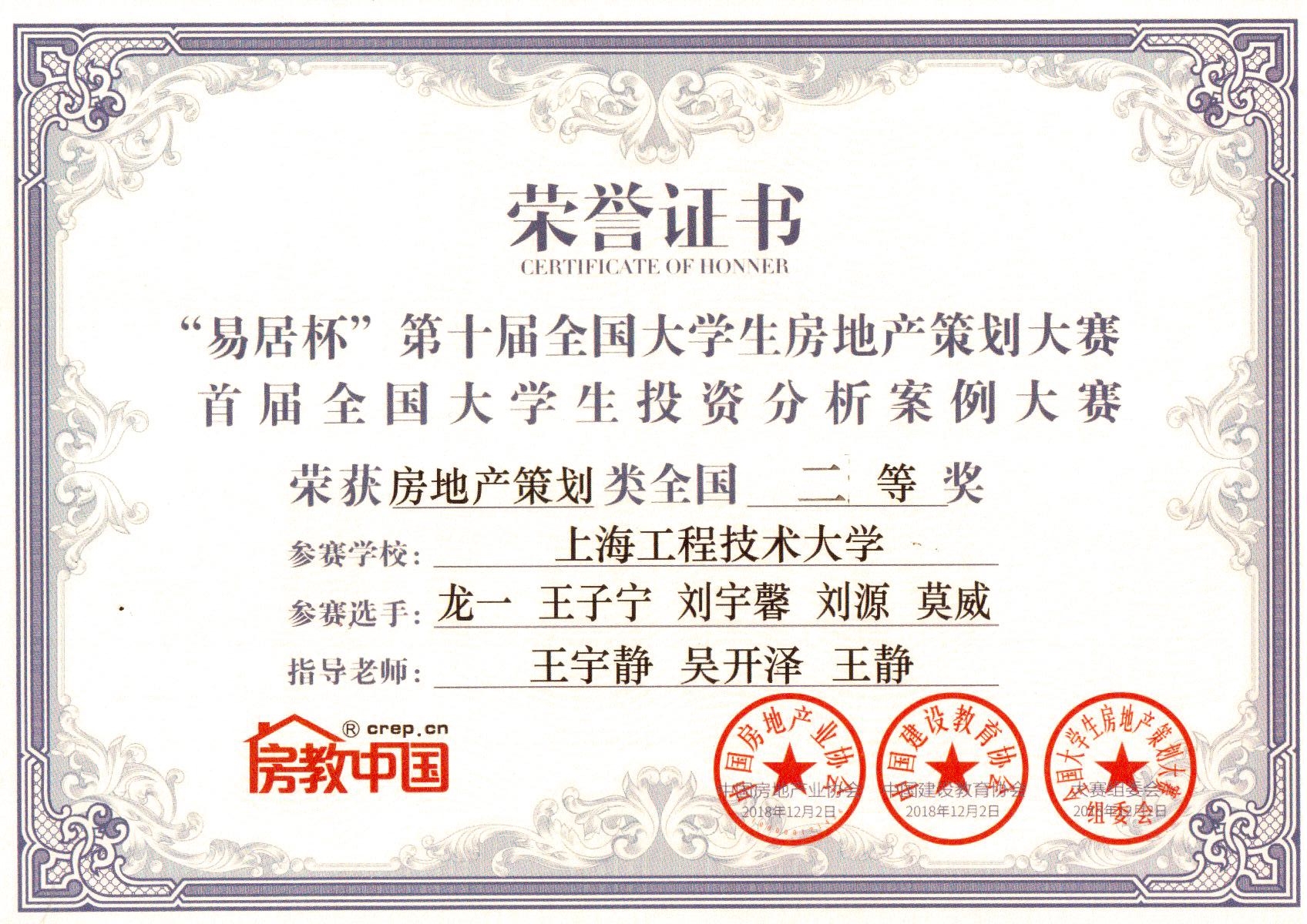 全国大学生房地产策划比赛由中国房地产业协会和中国建筑教育协会共同举办,本届大赛共有来自全国170所高校共6500名学生报名参赛,经过近8个月的激烈角逐,最终38支队伍脱颖而出,晋级全国总决赛。上海市高校中,仅有华东师范大学和我校进入总决赛。我校工程管理专业学生连续两次晋级全国总决赛并获佳绩,有效提升了我校工程管理专业在全国的知名度。
