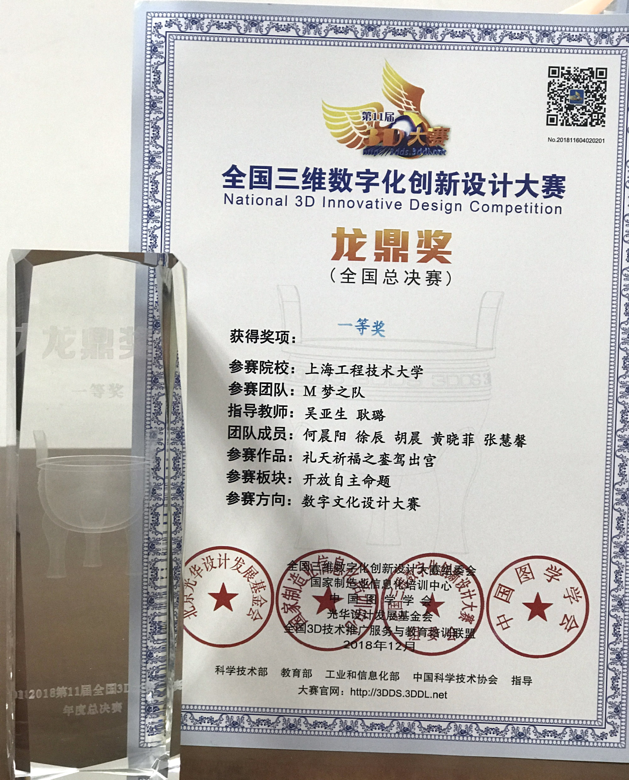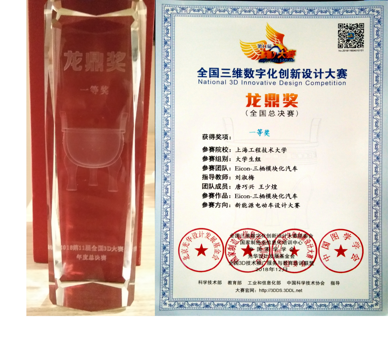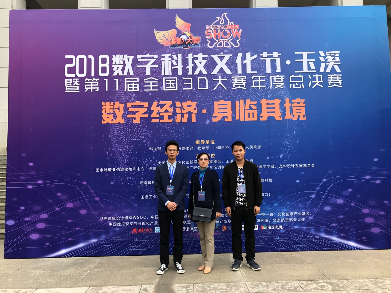 12月6日至9日,以“数字经济·身临其境”为主题的“2018数字科技文化节·玉溪暨第11届全国3D大赛年度总决赛”系列活动在云南玉溪举行,经过激烈角逐,由我校中韩多媒体设计学院吴亚生老师、耿璐老师指导,何晨阳、徐辰、胡晨、黄晓菲、张慧馨等同学制作的三维动画作品《礼天祈福之銮驾出宫》荣获数字文化设计方向全国总决赛一等奖;由我校材料工程学院刘淑梅老师指导,唐巧兴、王少煌同学创作的作品《Eicon-三栖模块化汽车》荣获数字工业设计方向全国总决赛一等奖。