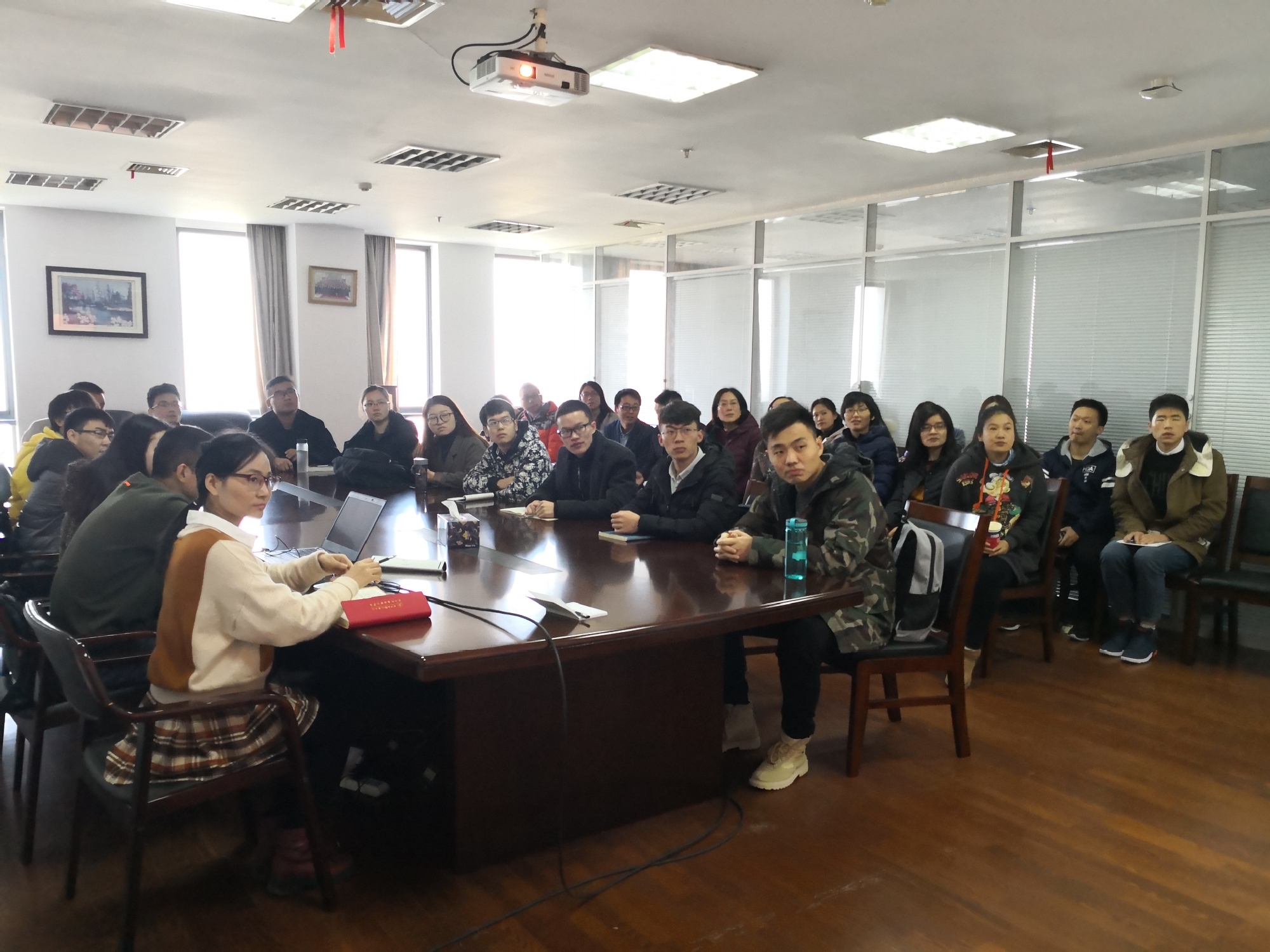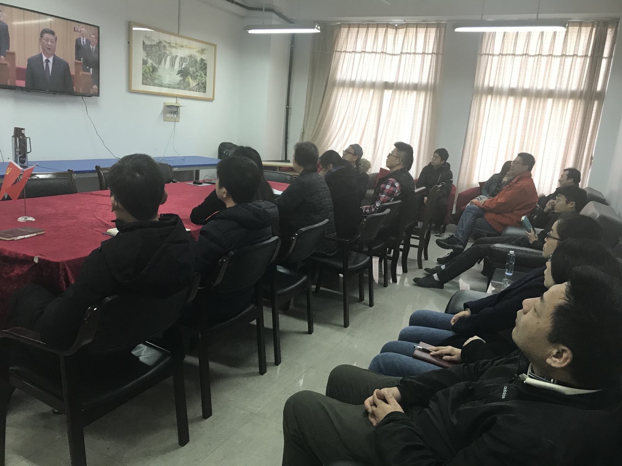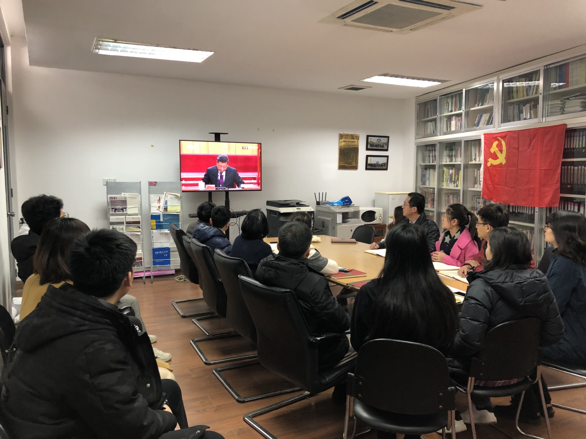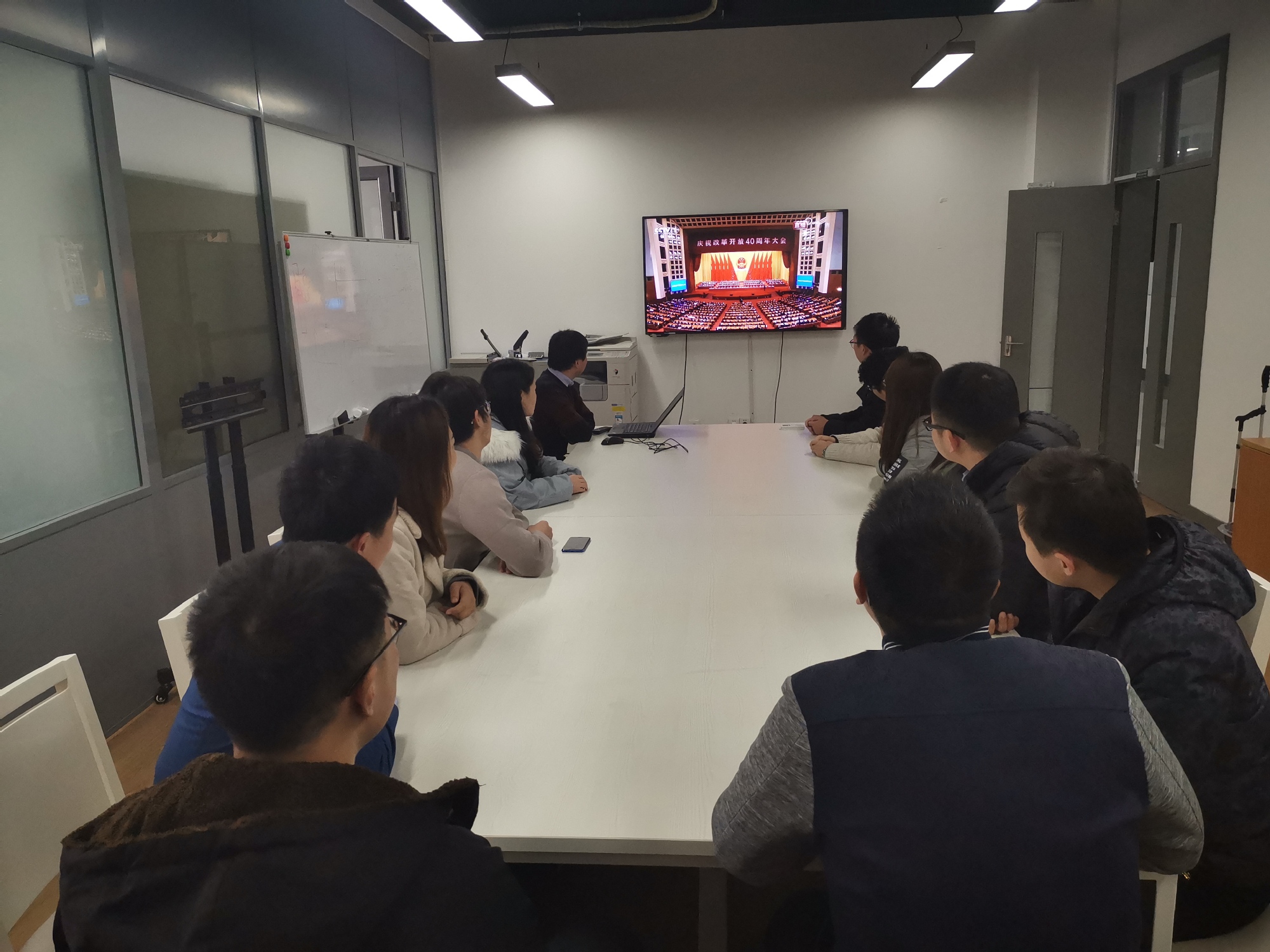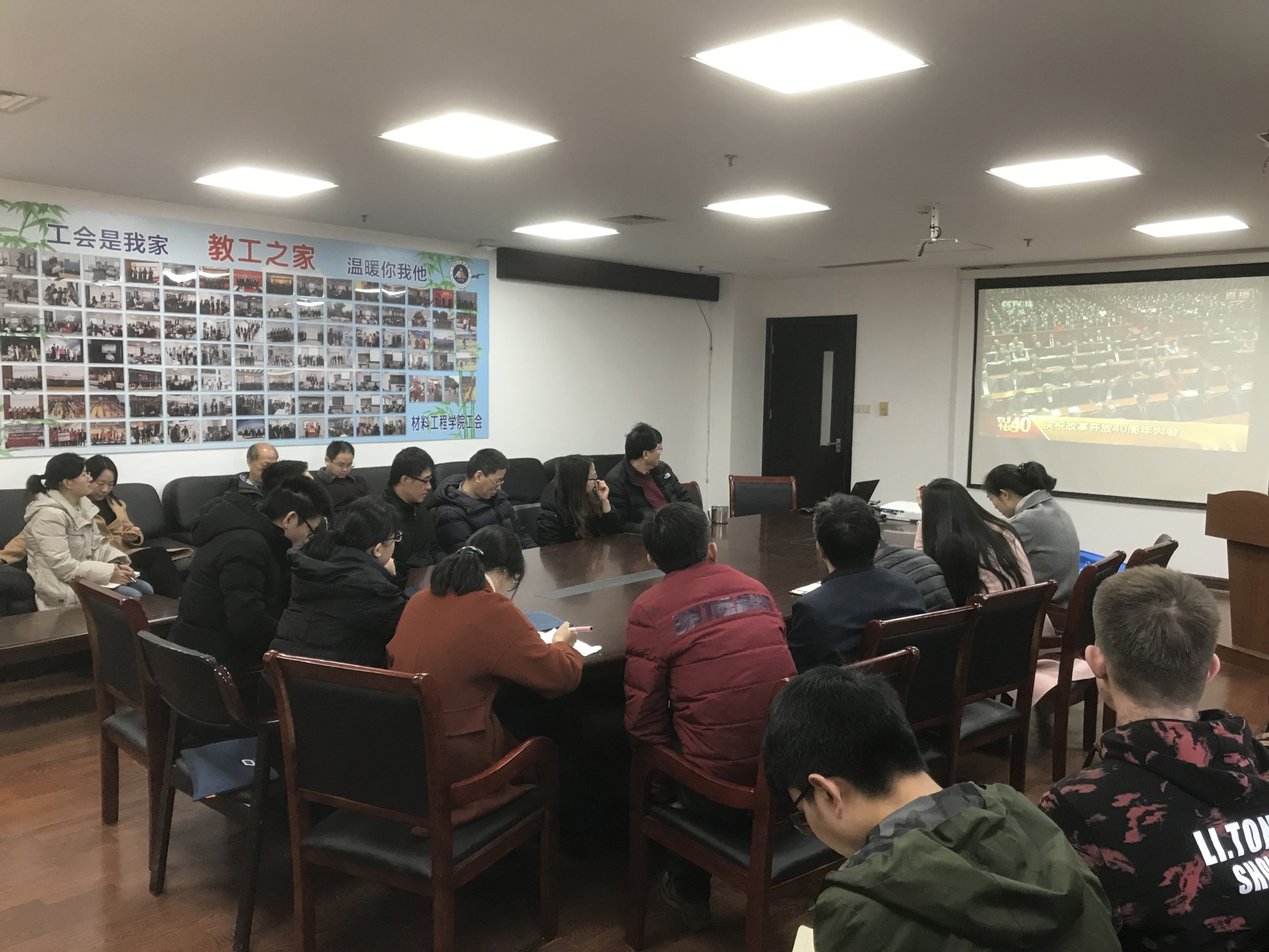 上海工程技术大学组织全校3200余名师生集体收看改革开放40周年大会直播。学校在行政楼406会议室举行专题学习会,全体党委委员出席。党委书记李江主持学习会。
