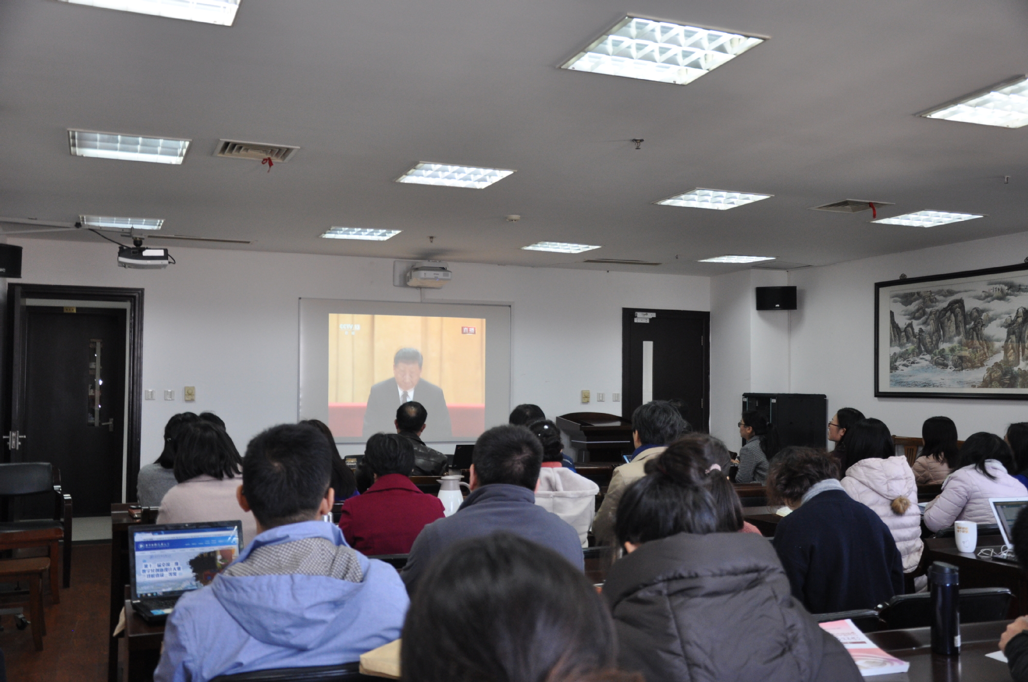 上午,各学院积极组织师生收看改革开放40周年大会直播。