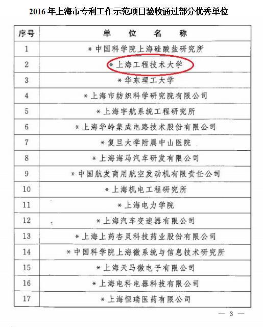 日前,上海市知识产权局下发了“关于公布2016年上海市专利工作试点示范项目验收通过单位的通知”(沪知局[2018]142号),并公布了验收通过名单,我校以优秀的成绩通过验收。