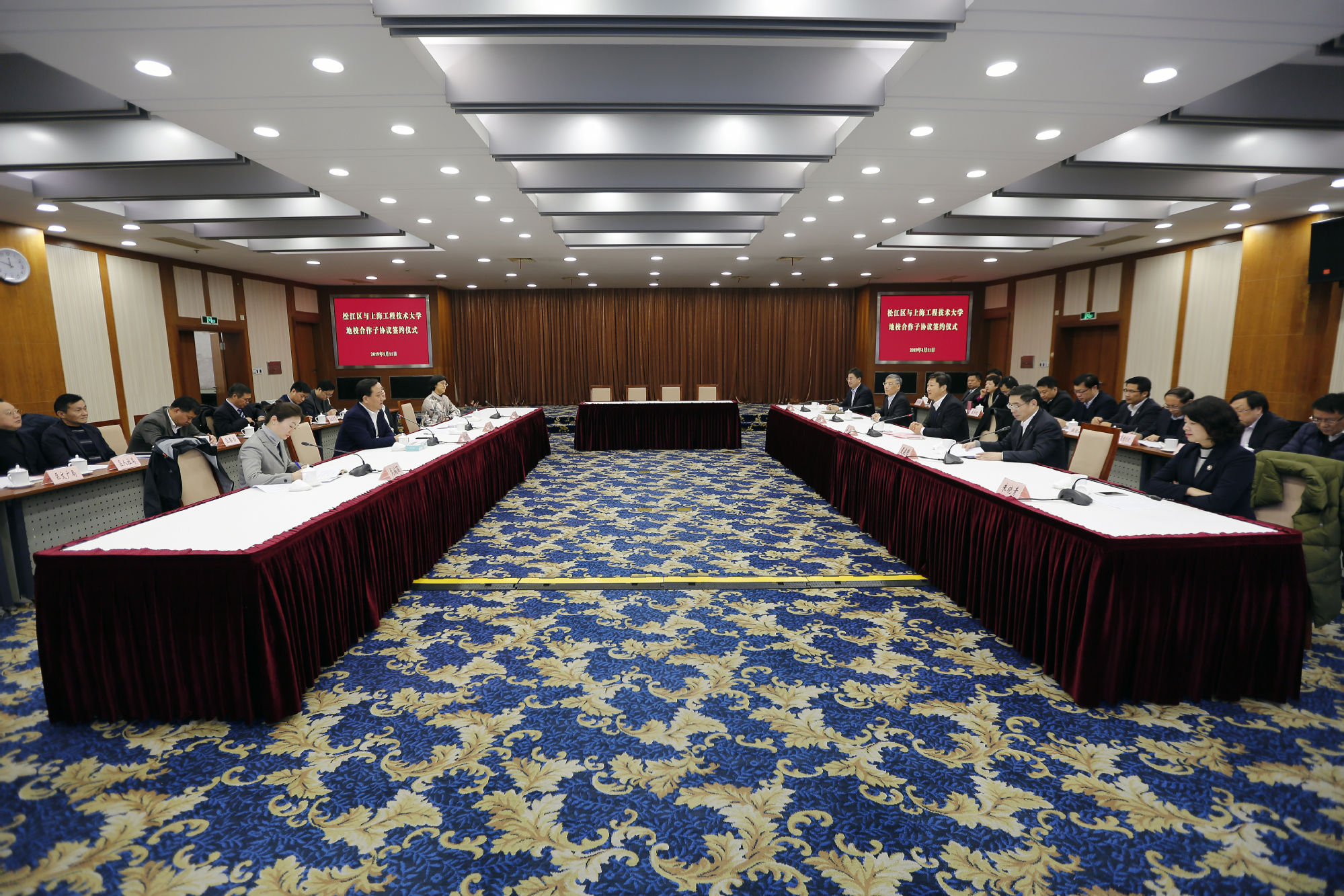 中共松江区委书记程向民,中共松江区委副书记、区长陈宇剑,松江区人民政府副区长龙婉丽,松江区人民政府副区长王玮华;上海工程技术大学党委书记李江,党委副书记、纪委书记鲁嘉华,党委副书记、副校长朱晓青,副校长王岩松,以及松江区相关委办局和我校相关职能部门负责人出席了仪式。