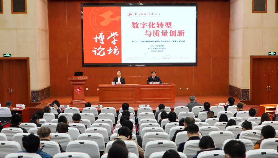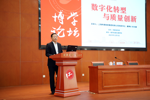 为深入贯彻党的十九届六中全会精神、习近平总书记考察上海重要讲话精神以及习近平总书记在浦东开发开放30周年庆祝大会上的重要讲话精神,践行“人民城市人民建,人民城市为人民”重要理念,12月7日下午,学校在行政楼B301会议室举行博学论坛,特邀上海申通地铁集团有限公司党委书记、董事长俞光耀作题为《数字化转型与质量创新》的辅导报告。全体在校校领导、申通地铁集团有关部门负责人、学校中层正职以及城市轨道交通学院师生代表共同出席论坛,论坛由校党委书记李江主持。