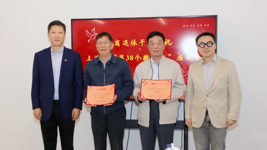 李江、娄永琪为陈力华和田信灿颁发了2024年度上海市教育系统关心下一代课题研究成果“特等奖”。