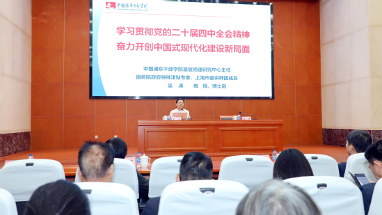 11月6日下午,学校举行党委理论学习中心组(扩大)学习会暨党的二十届四中全会精神培训会,特邀中国浦东干部学院吴涛教授作《奋力开创中国式现代化建设新局面——解读党的二十届四中全会精神》专题辅导报告。校党委理论学习中心组成员、中层干部、师生代表参加会议,会议由校党委副书记、副校长徐阳主持。
