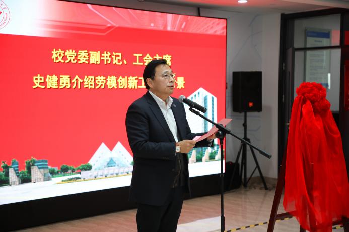校党委副书记、工会主席史健勇介绍了劳模创新工作室的创建背景,阐释了劳模精神的时代内涵,并就进一步做好劳模工作提出要求:要加强对劳模创新工作室的管理和服务,多措并举支持劳模创新工作室开展创新活动,同时搭建平台更好地发挥劳模“传帮带”的积极作用。