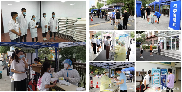在学校疫情防控领导小组和工作小组的带领下,全体后勤人在突发情况应急保障、核酸检测、疫苗接种、国家级考试和大型活动的防疫工作中全情投入。严把防疫关口,加强联防联控,规范作业程序,全力投入保障,度过了许多不眠夜。