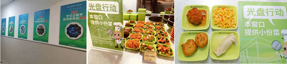 在爱粮节粮领域,后勤中心推行“前中后端”全过程节粮工作模式。“前端”由食堂定期检查仓库存货量和保质期限,根据用餐实际情况,分析常规菜品的销售热度,提前做好食材采购以及备餐安排;“中端”面向食品加工及烹饪环节,通过制度化的后厨流程管理,从源头上减少不必要的浪费;“后端”推出小份饭菜,提倡按需购买。