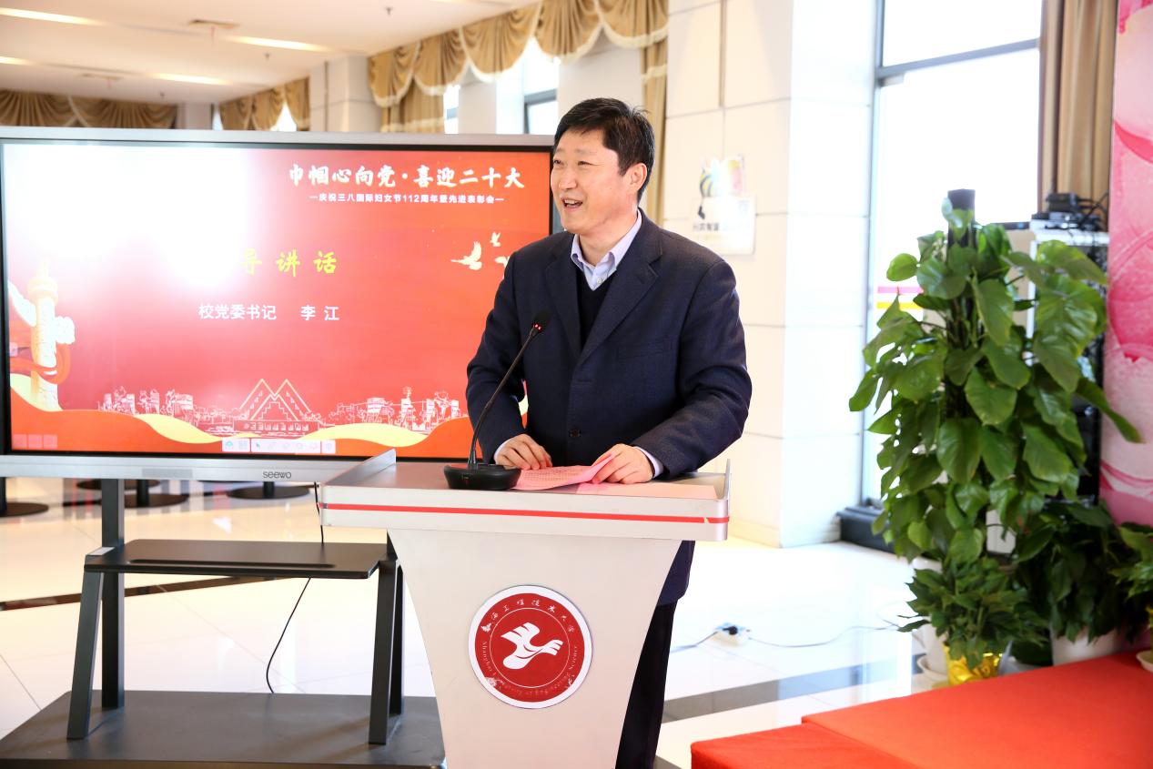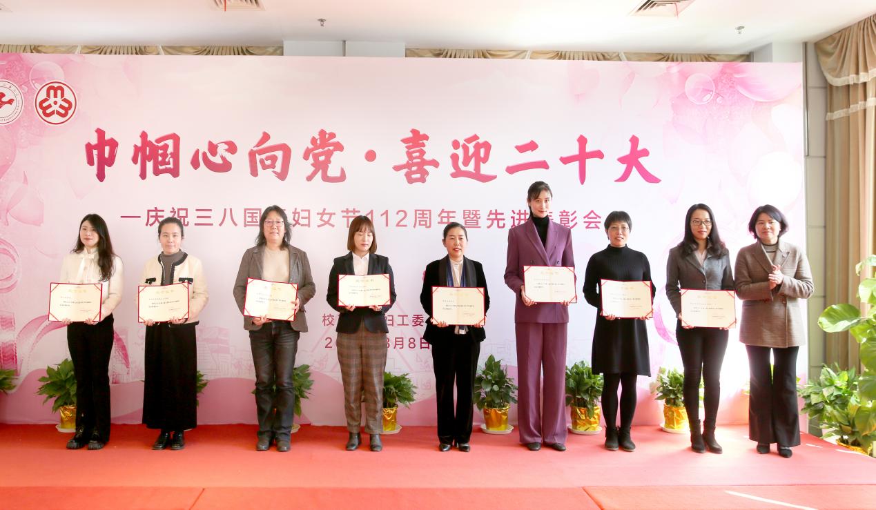 在“三八”国际劳动妇女节到来之际,为表彰先进典型、凝聚奋进力量,3月8日,学校举办“巾帼心向党 喜迎二十大”庆祝“三八”国际劳动妇女节112周年暨先进表彰会,校党委书记李江,党委副书记、校长俞涛,党委副书记、工会主席史健勇,党委副书记、纪委书记门妍萍,党委副书记、副校长、妇工委主任朱晓青出席会议,相关职能部处、学院负责人以及获奖师生代表参加会议,会议由校工会常务副主席、妇工委常务副主任李霞主持。
