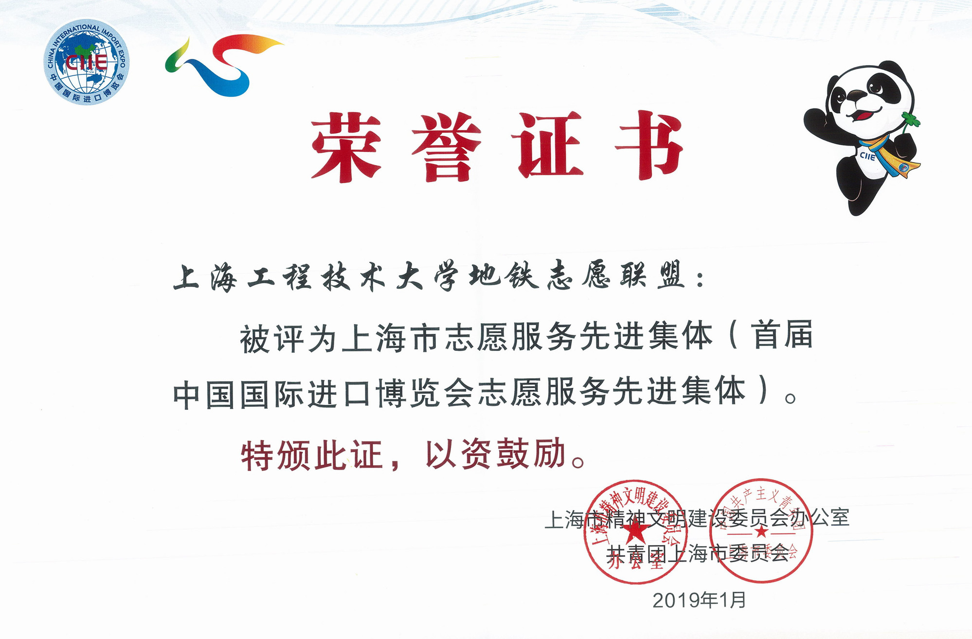 近日,我校地铁志愿联盟被上海市精神文明建设委员会办公室、共青团上海市委员会授予上海市志愿服务先进集体(首届中国国际进口博览会志愿服务先进集体)荣誉称号。充分展现了工程大志愿者昂扬向上、积极主动、热情服务的新时代风采,大力弘扬了“奉献、友爱、互助、进步”的志愿者服务精神,以实际行动践行社会主义核心价值观。全市共有20个志愿服务组织获此殊荣。