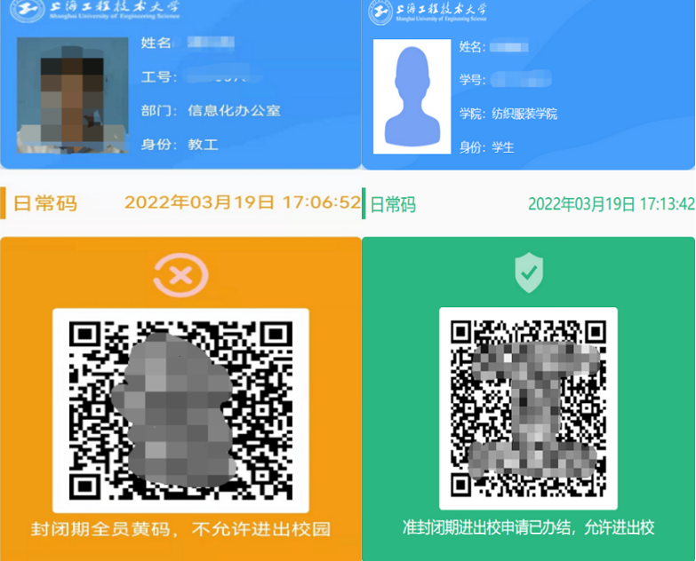随着松江校区从封闭管理转为准封闭管理,结合学校发布的“校园码实施方案”,信息化办公室充分利用校园码解决了“准封闭管理”期间师生进出学校的问题。根据目前的管理方案,凡获得审批准许离返校的师生,校园码变为绿色,可以从校门口闸机刷码通过。刷码后校园码立刻“变脸”为黄色,重新通行需要再次获得授权。该项工作实施以来,师生出入学校的管控效率明显提高。