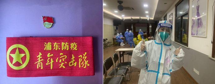 在浦东疫情防控的关键时期,她积极报名社区疫情防控志愿者,在居住地成为一名光荣的浦东防疫“青年突击队”队员,从3月18日开始,一直工作至今。参加社区党员、志愿者会议,进行社区分控核酸检测工作的前期部署等。在做核酸检测的现场帮助不会使用智能手机的老人完成健康云登记,清点分组人员,维持现场秩序,为社区居民们排忧解难,到处活跃着她白色的身影。
