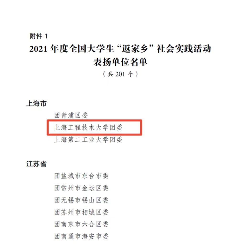 近日,共青团中央对2021年度全国大学生“返家乡”社会实践活动进行总结通报,经基层提交典型事迹材料、省级团委推荐、组织评议等环节,并报团中央书记处批准,对在“返家乡”社会实践工作中表现突出的单位、个人和项目进行表彰。我校获评2021年度全国大学生“返家乡”社会实践活动表扬单位荣誉称号。