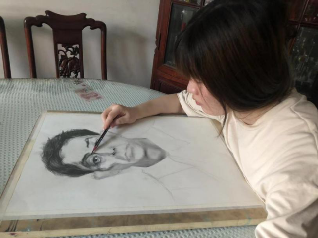 《画笔下的红色传承》实践团为沈麟章烈士画像