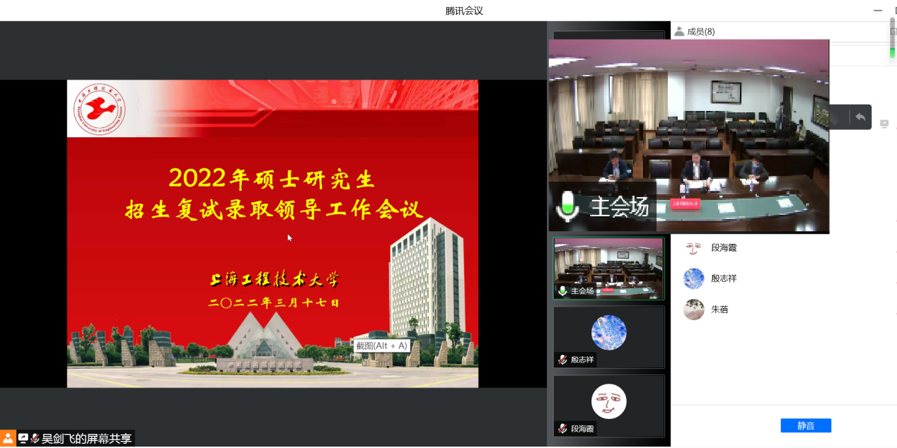 317日,校研究生招生领导小组专题讨论通过了《上海工程技术大学2022研究生招生复试与防疫工作方案》,并上报上海市教委和教育考试院。同时,学校成立研究生招生工作突发事件应急管理领导小组,负责招生复试工作中的突发事件处置。319,我校2022年硕士研究生招生复试工作正式启动。校领导高度重视研招工作,俞涛校长,王岩松副校长多次参加教育部和上海市教委召开的研招工作视频会议,对我校研招工作给出指导意见,要求复试和防疫工作两手抓,确保研招工作安全、公平、科学。