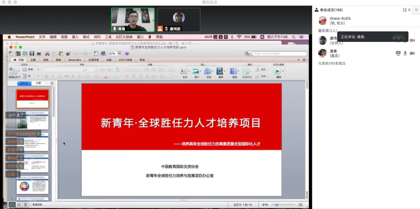 在线开展“新青年全球胜任力人才培养项目”学生遴选、2022秋季国(境)外交流学生遴选推荐、国(境)外学习交流项目洽谈等工作。我校第一批40名学生于4月16日正式开始“新青年全球胜任力人才培养项目”线上学习。