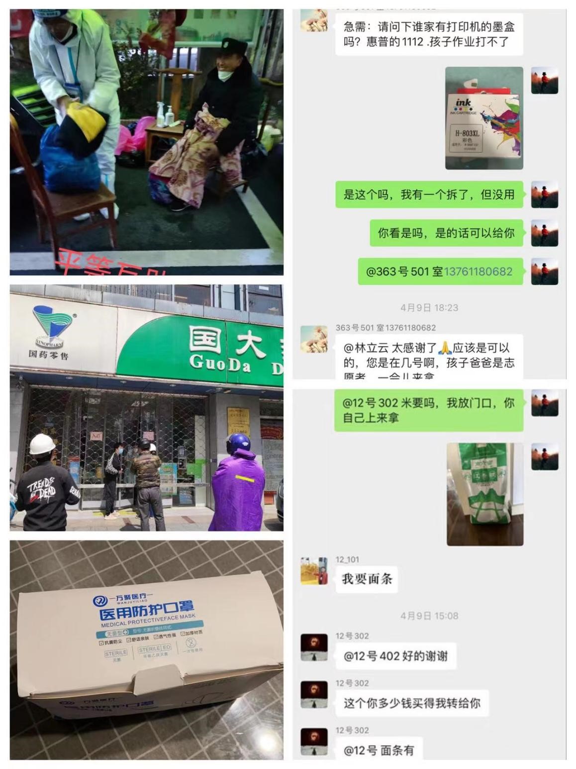 杨云老师看到小区值班棚里的大白和保安因为降雨降温套上大垃圾袋御寒,就主动把家里的一些冬衣和床垫捐给他们用来御寒;当在小区群里看到有老人因为治疗高血压的药物即将断货而惶恐不安时,杨老师往返穿梭于多个药店,成功帮老人买到救命药。吴海燕老师看到志愿者缺乏口罩,立刻拿出了家里储备的医用口罩,送给志愿者;小区排队核酸时,主动协助组织者维护排队秩序,优化排队方案。林立云、王玺、王娟几位老师看到小区居民发布的物资求助信息时,纷纷拿出自己家的物资,帮助大家渡过难关。善意汇聚、涓滴成河,发展规划处的老师们在春寒料梢中释放暖意,温暖着身边的人。