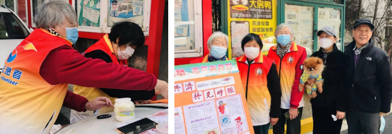 纺织服装学院关工委委员曹丽纳作为普陀区长风街道丽娃爱心志愿队队长,自从本轮疫情开始,便带领队员一直活跃在抗疫一线。曹老师在社区制作手绘海报,图文并茂地宣传防疫知识。作为队长她争做表率,投身抗疫队伍,穿起蓝色防护衣,戴上口罩,积极配合居委通知每户参加核酸检测、发放抗原检测试剂、帮助老人检测等。在小区解封后,第一时间将小区出入证送达居民手中,方便居民出门。