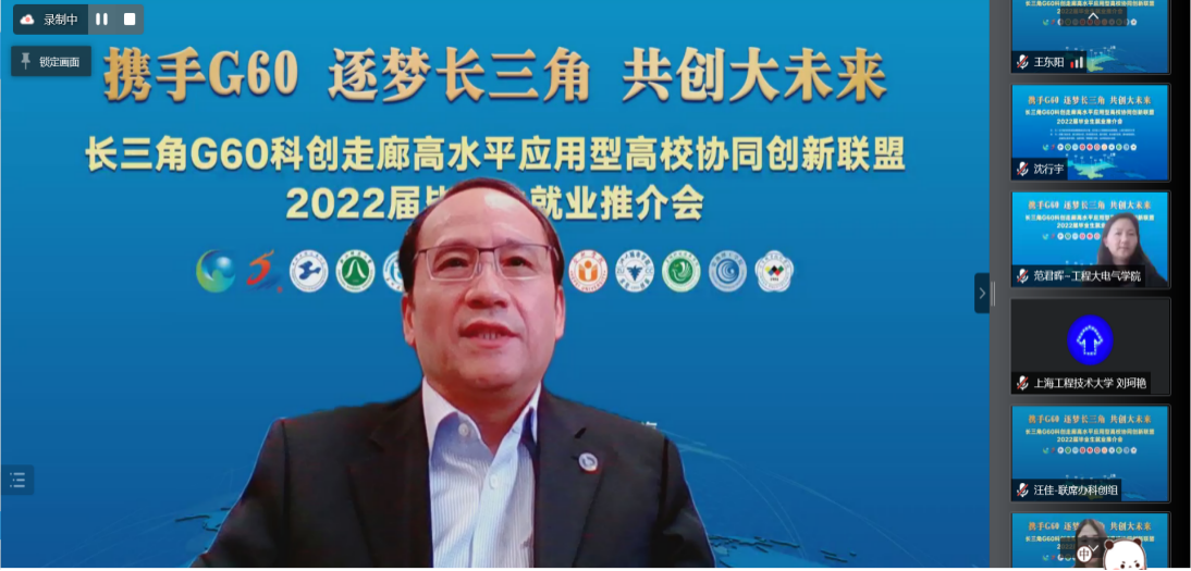 俞涛校长牵头对接G60联席办、松江区人社局,深挖就业岗位资源,联合举办“长三角G60科创走廊高水平应用型高校协同创新联盟2022届毕业生就业推介会”,为疫情期间封闭在校的毕业生和企业有效搭建就业供需精准桥。