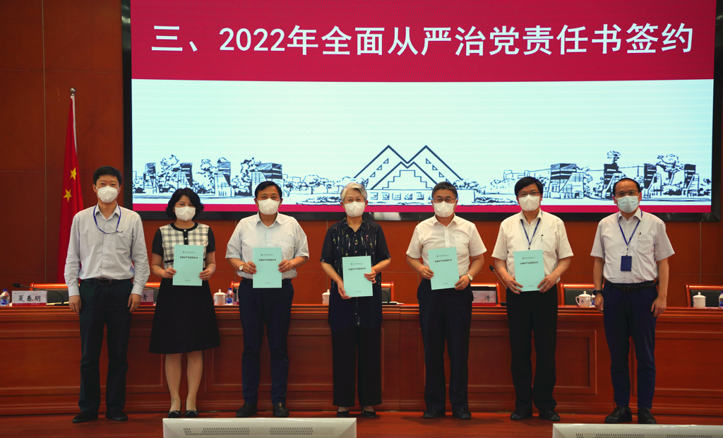 会上,学校举行了全面从严治党责任书签约仪式。校领导正职与副职,全体校领导与机关部处长、直属单位负责人、学院书记院长代表分别签约并颁发了2022年学校全面从严治党责任书。