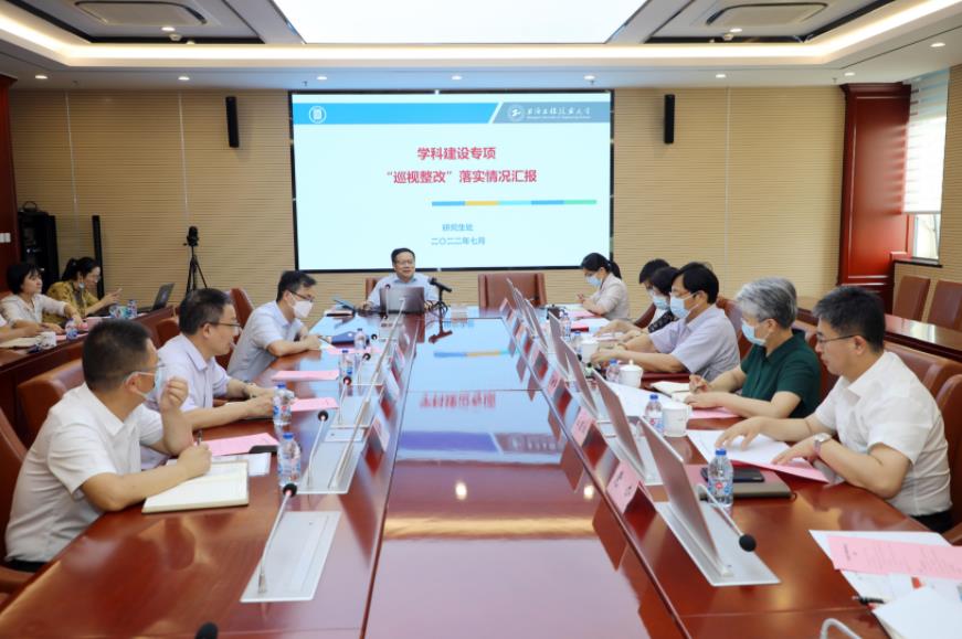 学科建设办公室主任张华、发展规划处处长殷志祥分别介绍了学科建设专项整改的进展情况。巡视整改工作专班及与会人员进行了充分的交流讨论。