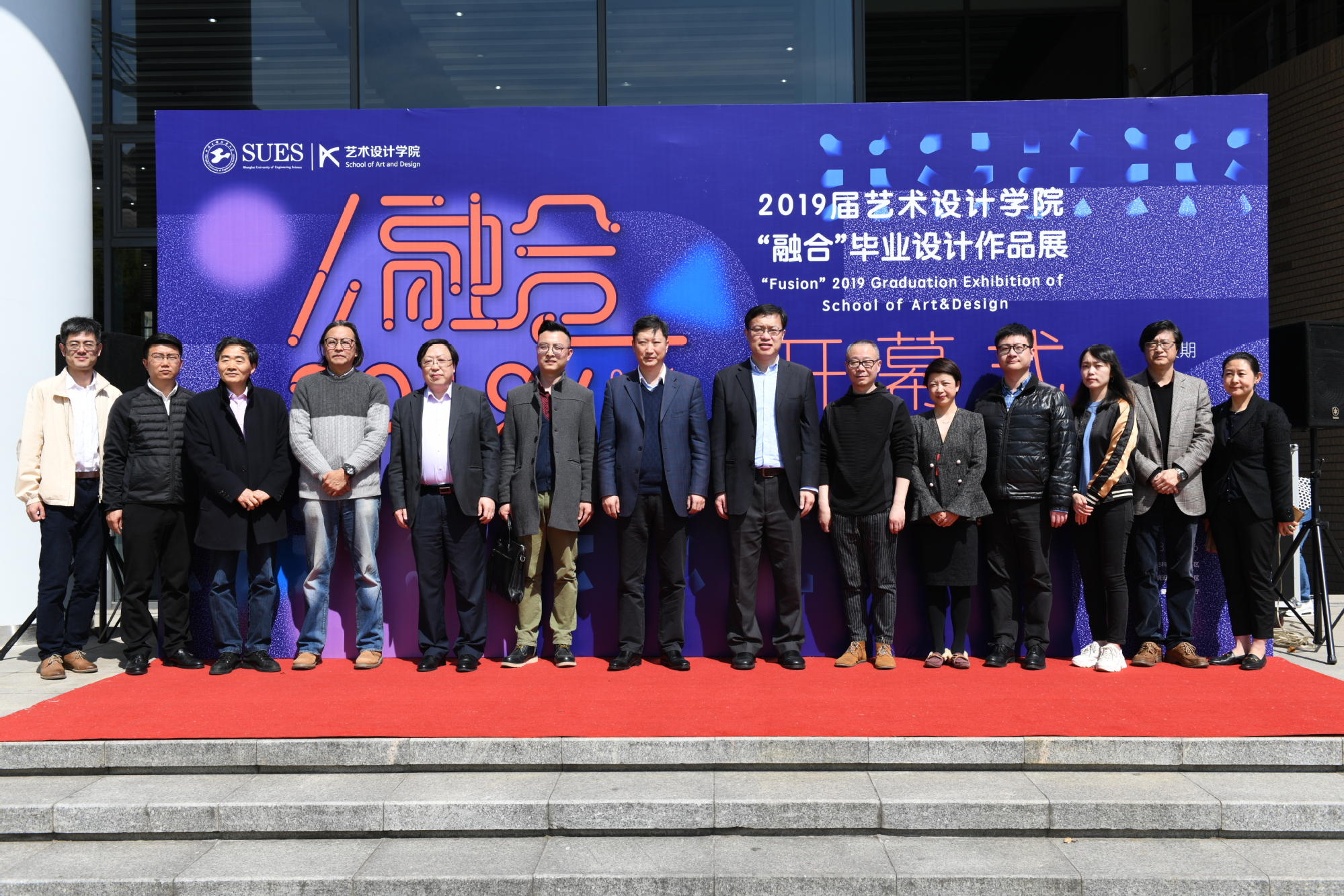 以“融合”为主题的艺术设计学院2019届毕业设计展,4月16日在艺术楼广场开幕。党委书记李江,党委常委、宣传部部长兼党办主任王陈,科研处处长陈思浩,学生工作部(处)处长朱蓓, 中韩多媒体设计学院院长吴亚生,校团委书记王佳杰,机械工业出版社艺术设计分社社长饶薇,上海维茨文化传播有限公司总经理陈道柏,浙江舜江建设集团有限公司总裁办周成以及学院全体党政领导班子等参加开幕式。