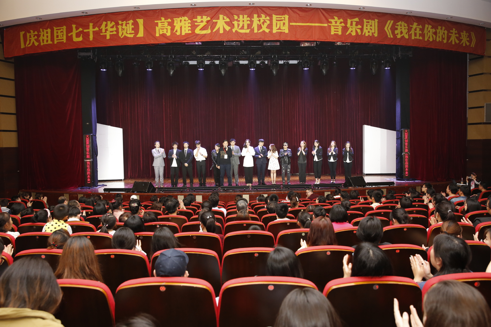 4月23日,“庆祖国七十华诞”高雅艺术进校园——音乐剧《我在你的未来》在志宏堂拉开帷幕,活动旨在深入学习贯彻习近平新时代中国特色社会主义思想,宣传文化战线、坚定文化自信、强化责任担当,深入推进以美育人、以文化人,提升校园文化品位,丰富校园文化生活,不断提高师生的艺术修养和文化素质。校党委副书记鲁嘉华与近600余名师生共同欣赏了此部音乐剧,零距离感受了音乐剧的魅力。