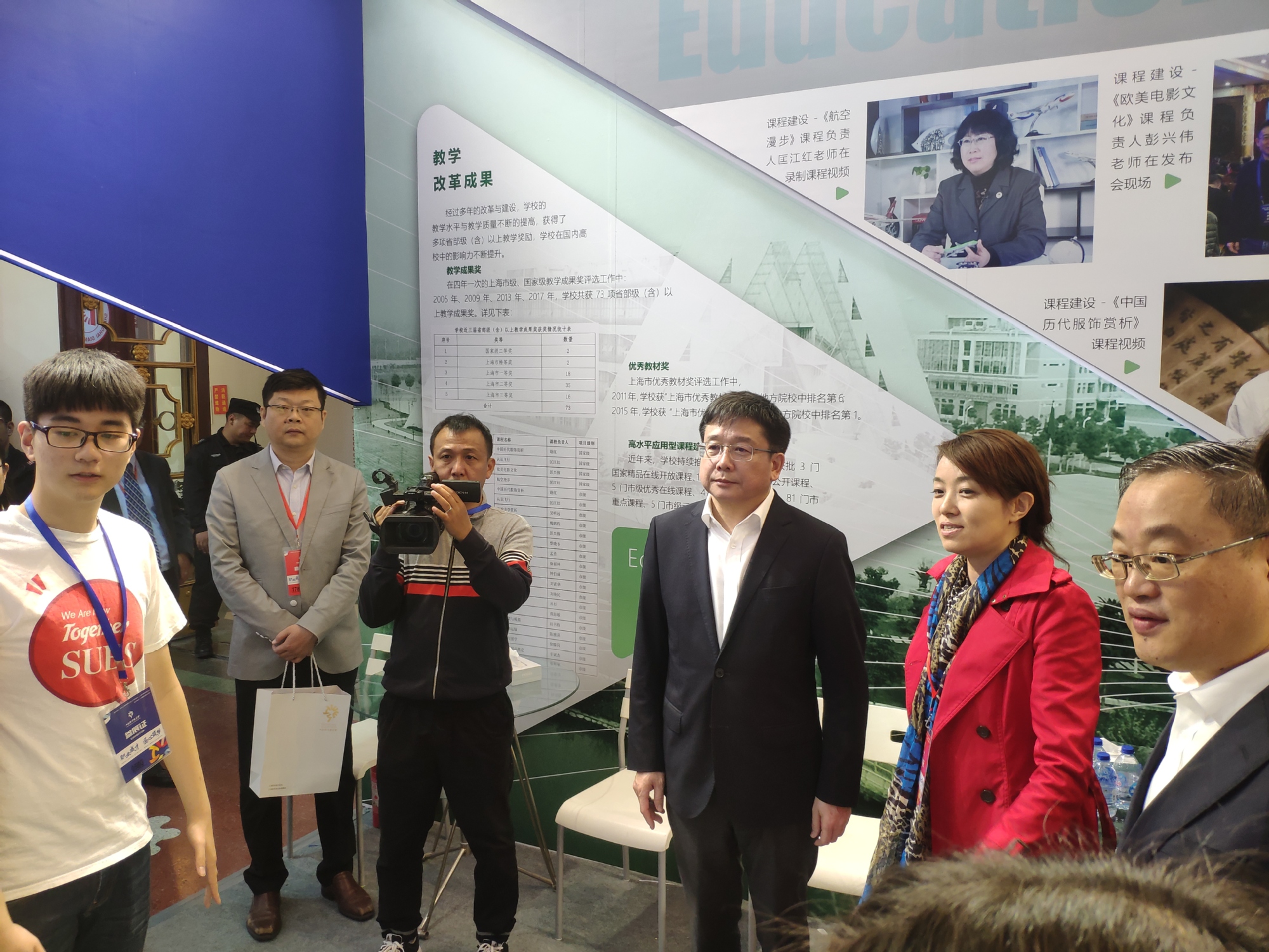 在教育博览会的第一天,我校展台就迎来了上海市副市长陈群。陈群副市长参观了我校应用型本科的建设成果,体验了反映我校专业特色的服装智能定制系统以及无人机模拟器,了解了数字化课堂实践教学的最新发展,对于我校人才培养中突出实践性、应用型理念给予了肯定。