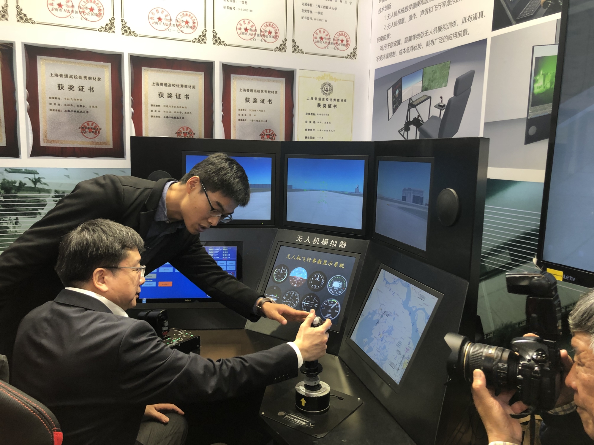 此次参展,学校通过多方面、不同学院特色专业分区展示,全方位呈现了广播电视工程、服装设计与工程、飞行器制造工程等应用型本科专业的建设成果。我校展台还展示了无人机模拟器、5G+VR技术的课堂智能教学系统、服装智能定制系统等互动性强、特色鲜明的互动项目,吸引了广大参观群众争相体验。