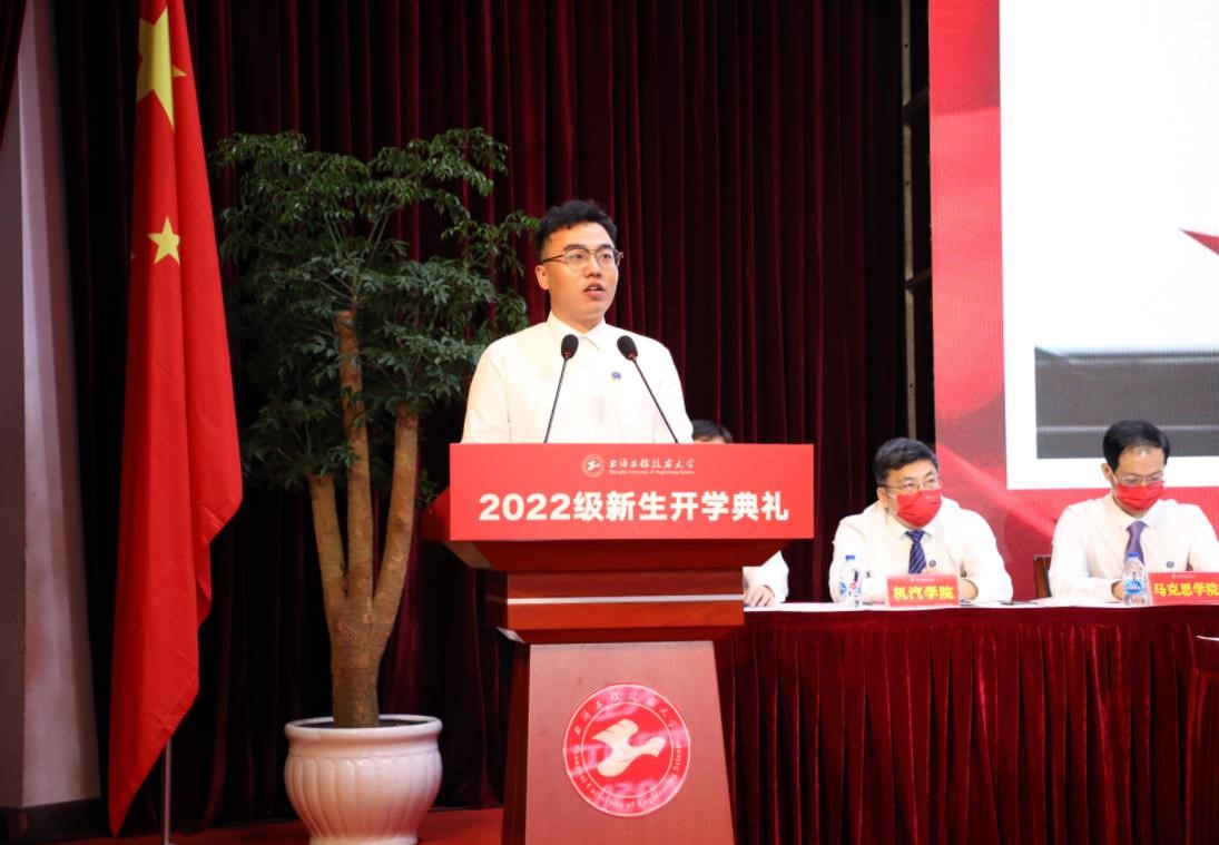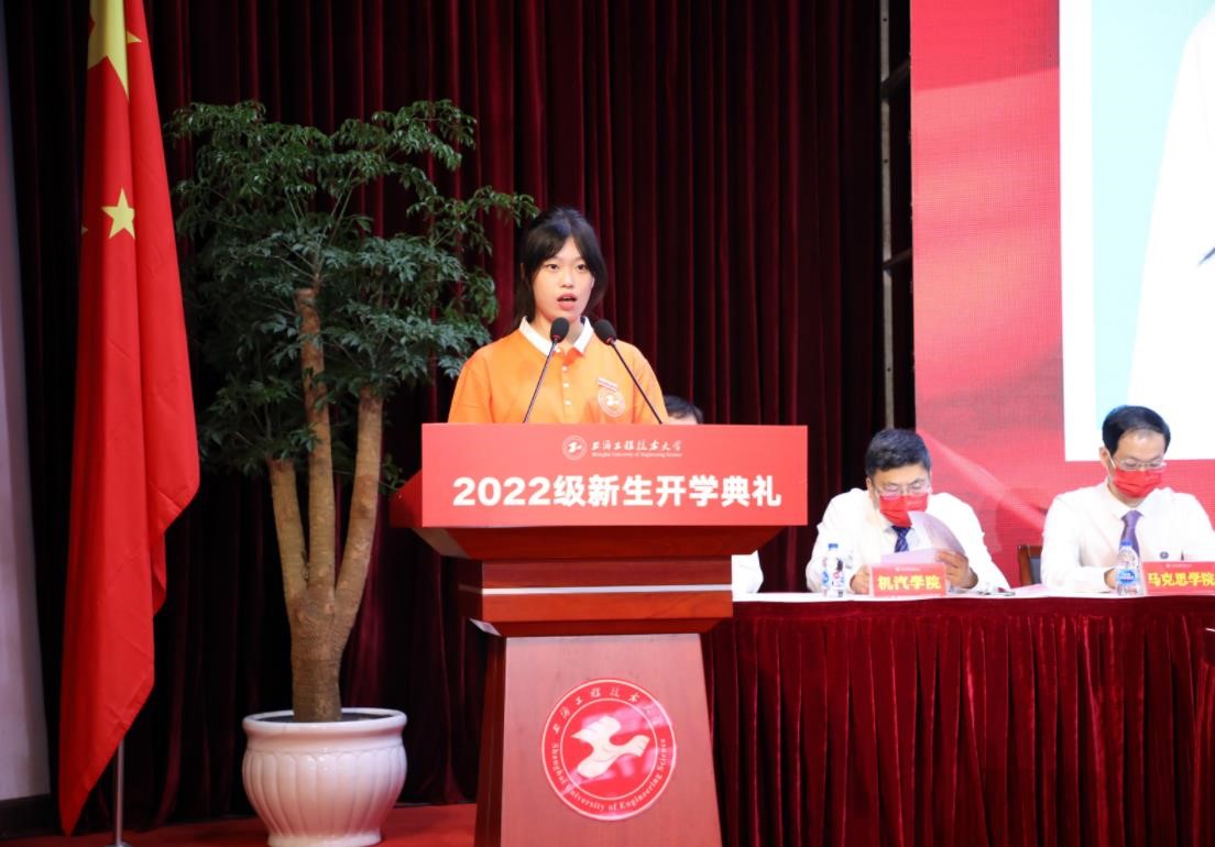 学生会执行主席孙婷妮同学带领新生进行入学宣誓,努力践行请党放心,强国有我的铮铮誓言。