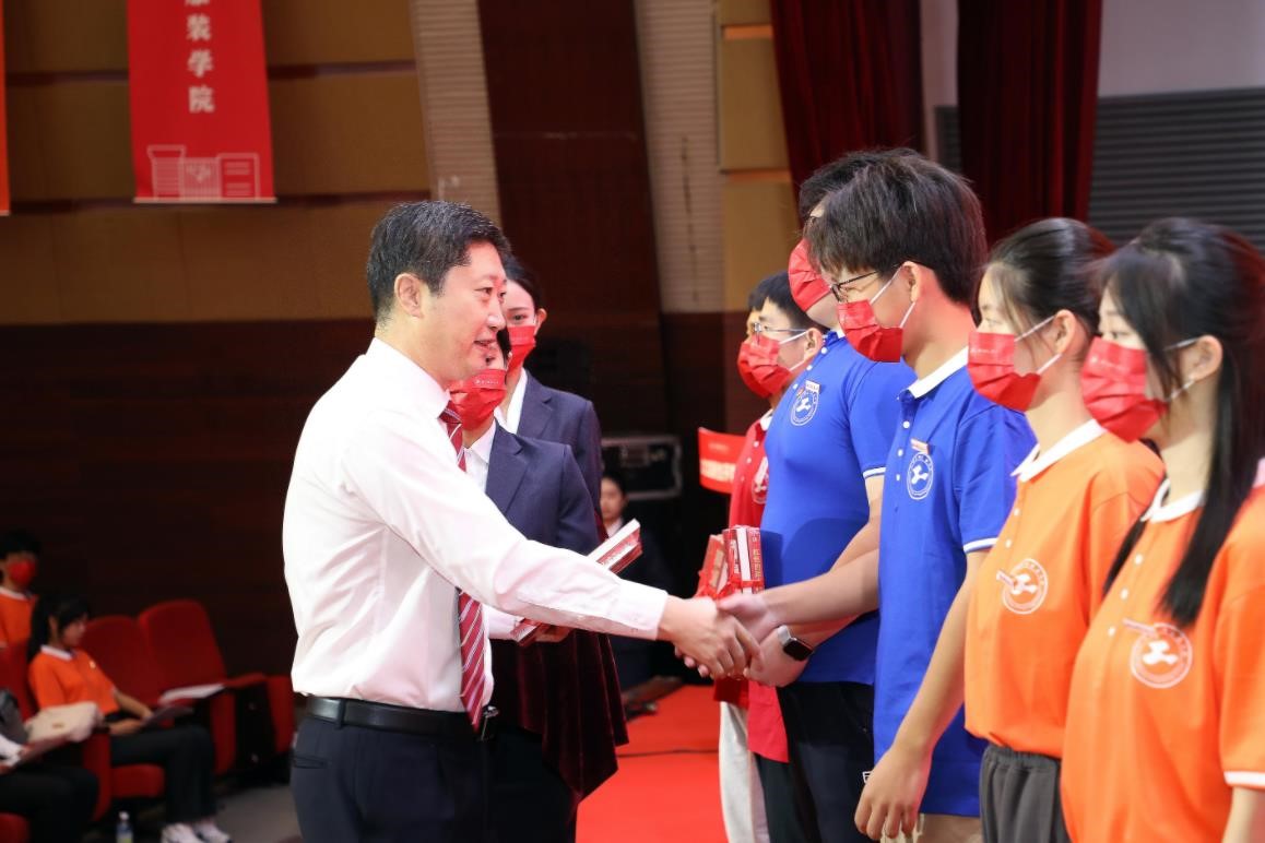校党委书记李江为新生接续培养对象赠送红色书籍,鼓励同学们坚定理想信念,汲取信仰的力量,接过前辈手中的接力棒,用脚踏实地的奋斗,勇毅前行的担当,执着追求的梦想,肩负起实现中华民族伟大复兴的历史使命,在历史的接力赛道上跑出青春最好的成绩。