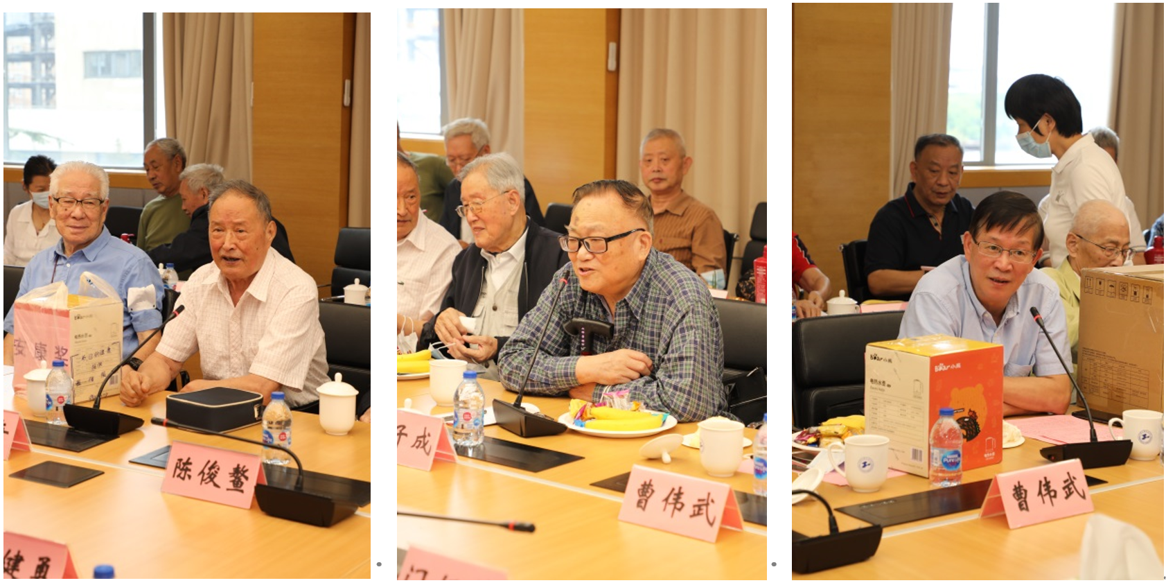 学校离休干部代表、94岁高龄的施有奇老师代表老同志们感谢学校党委的关心和关爱。他讲到:“我虽然已经94岁了,但是我要永远听党话、跟党走,保持革命本色,传承红色基因”。退休局级老领导徐子成、田信灿分别做了交流发言,并期望学校能够蓬勃发展,在学科、科研建设上取得更大成绩。