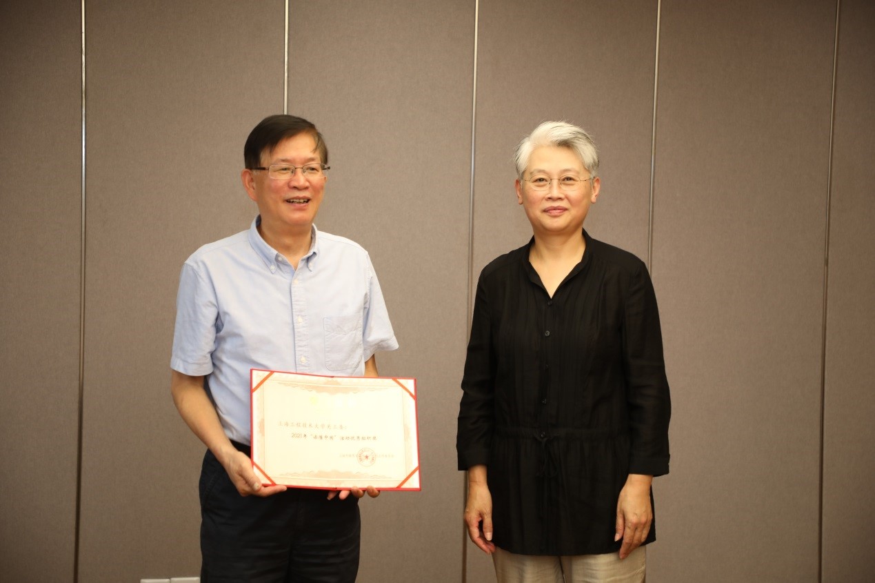 会上,俞涛校长和门妍萍副书记分别向校关工委常务副主任田信灿颁发了“全国教育系统关心下一代工作先进集体”及2021年“读懂中国”活动优秀组织奖荣誉证书。