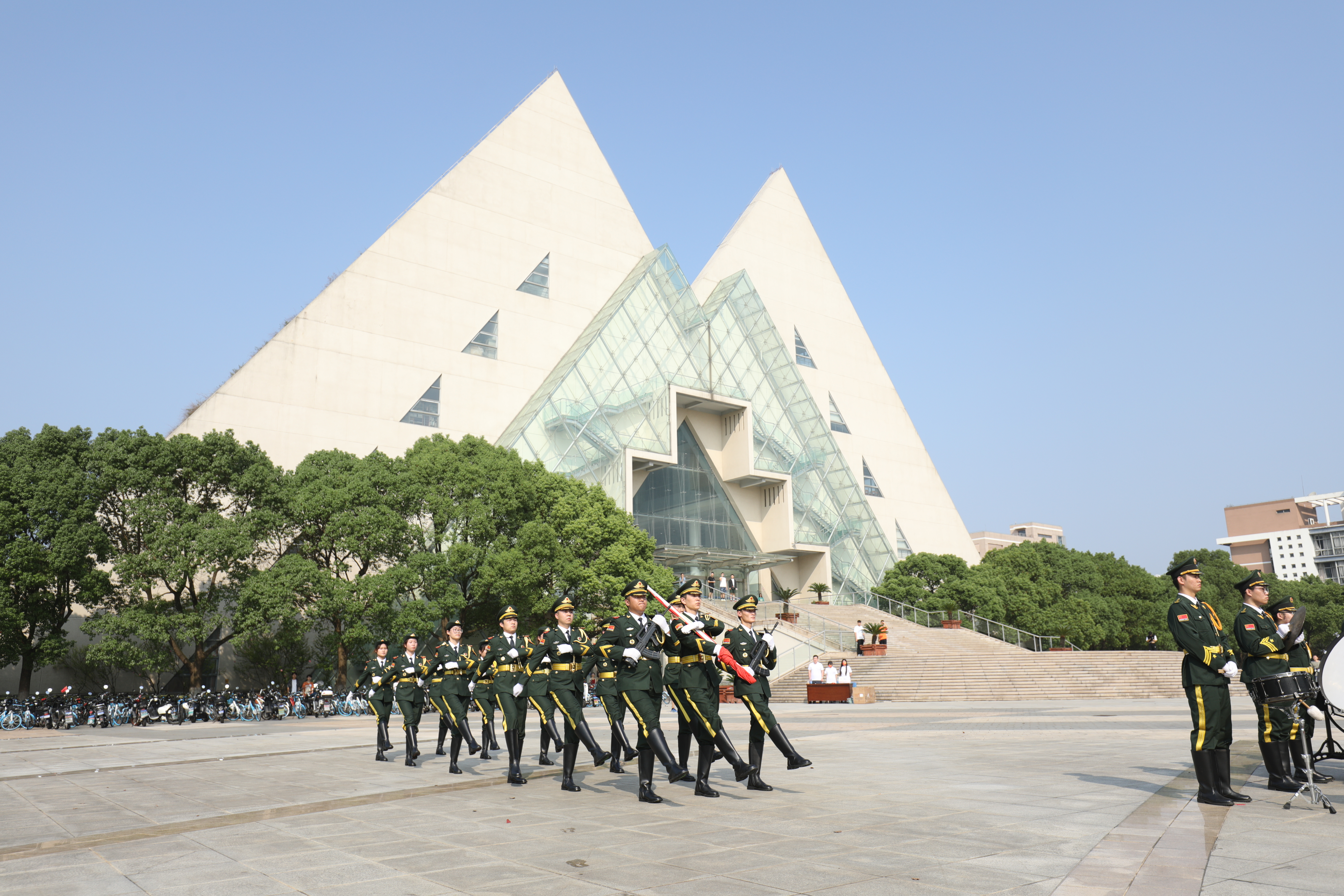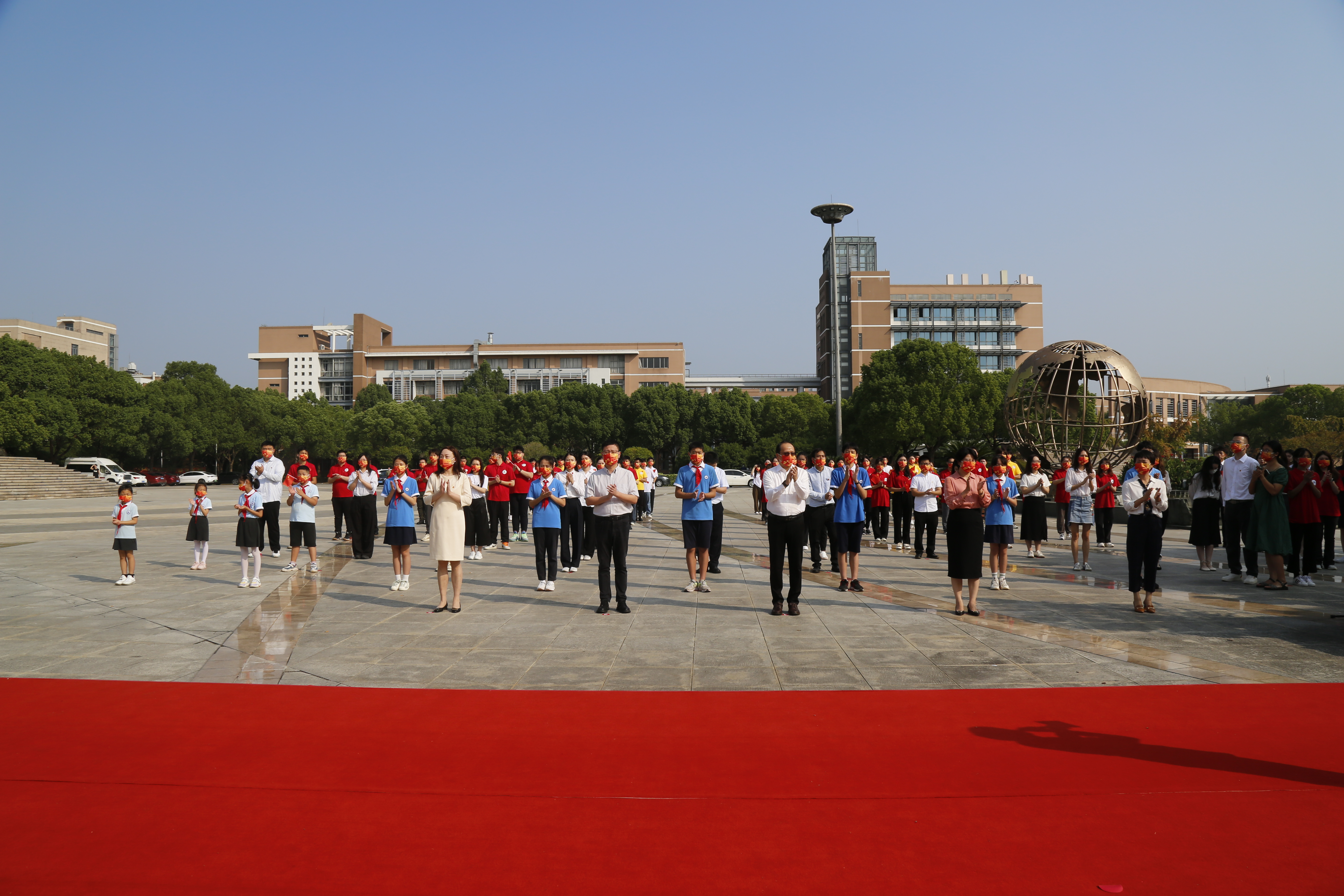 上午9时,英姿飒爽的国旗护卫队成员迈着铿锵有力的步伐,伴着庄严嘹亮的国歌声,护送国旗入场。随着学校军乐团演奏的嘹亮《义勇军进行曲》,全场师生向国旗行注目礼、高唱国歌,以饱满的热情和昂扬的精神,唱出对祖国深切的崇敬与热爱之情,为伟大祖国送上深情祝福。