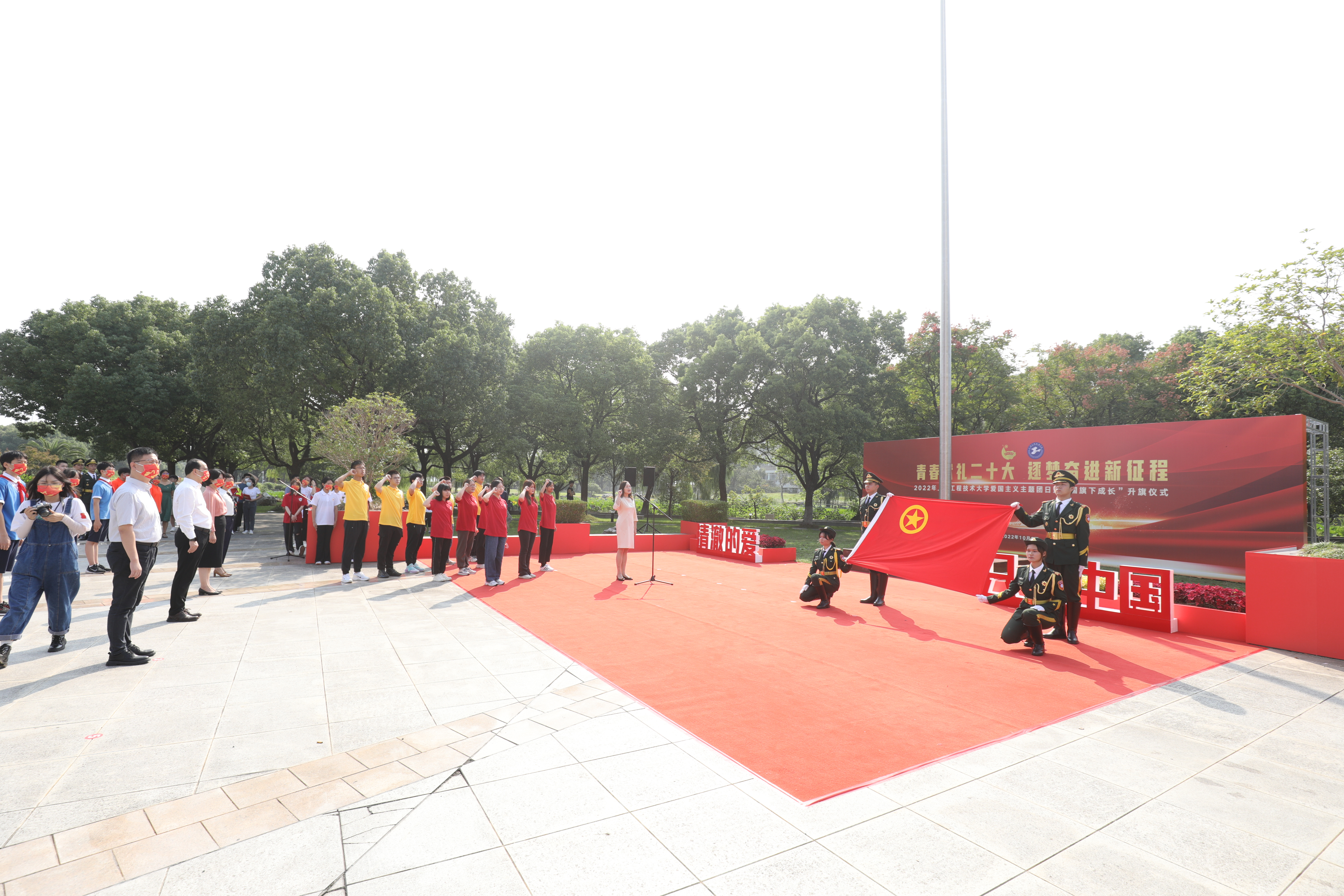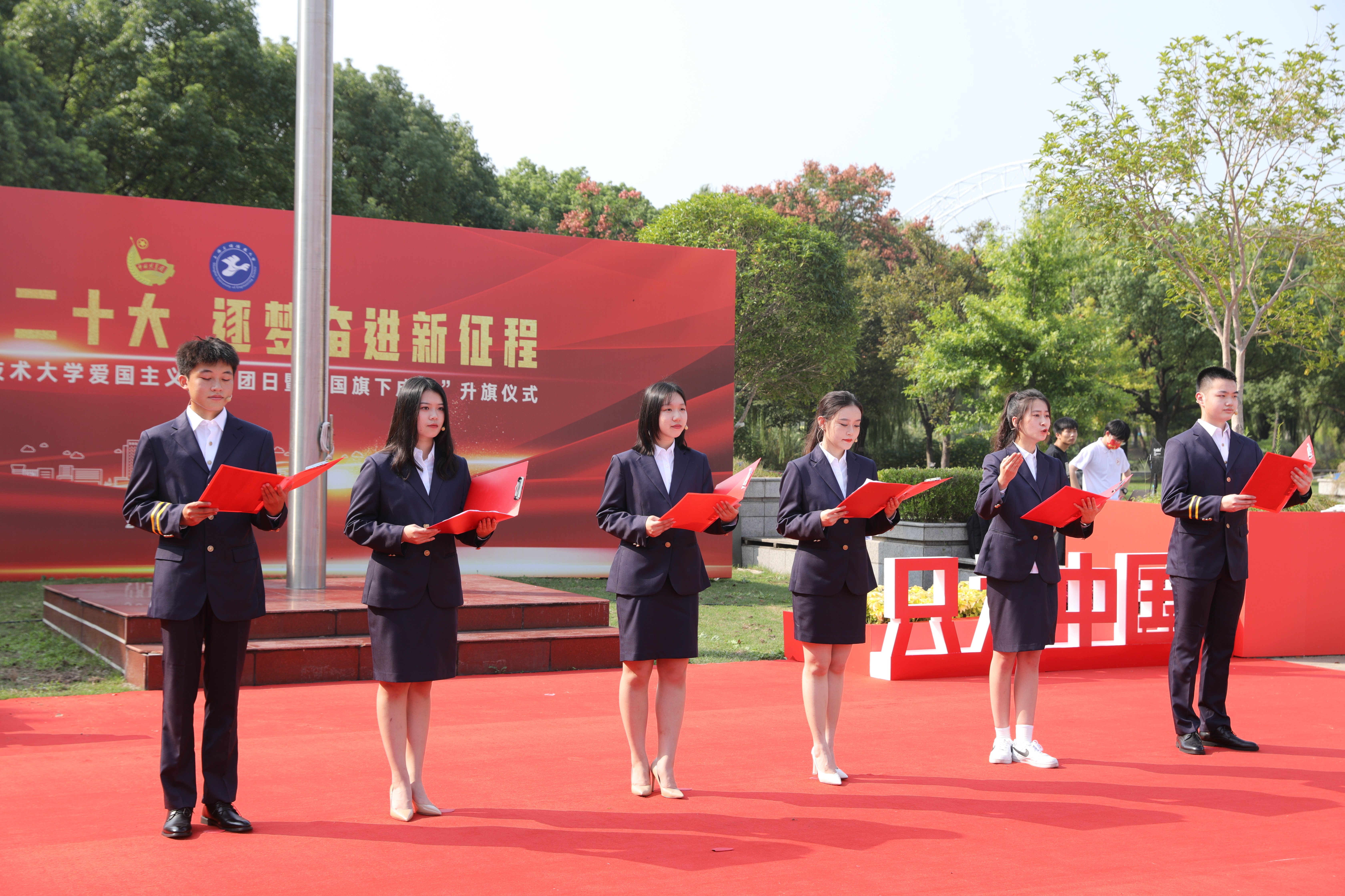 10月1日上午,学校在松江校区博学广场举行“青春献礼二十大 逐梦奋进新征程”庆祝中华人民共和国成立73周年升旗仪式。校长俞涛,校党委副书记、副校长朱晓青出席活动。校长办公室、团委、工程大泗泾附校负责人,校院两级团干部、上海市高中高校推优一体化学员代表、新入团团员代表、新生代表等90余名师生参加了升旗仪式。