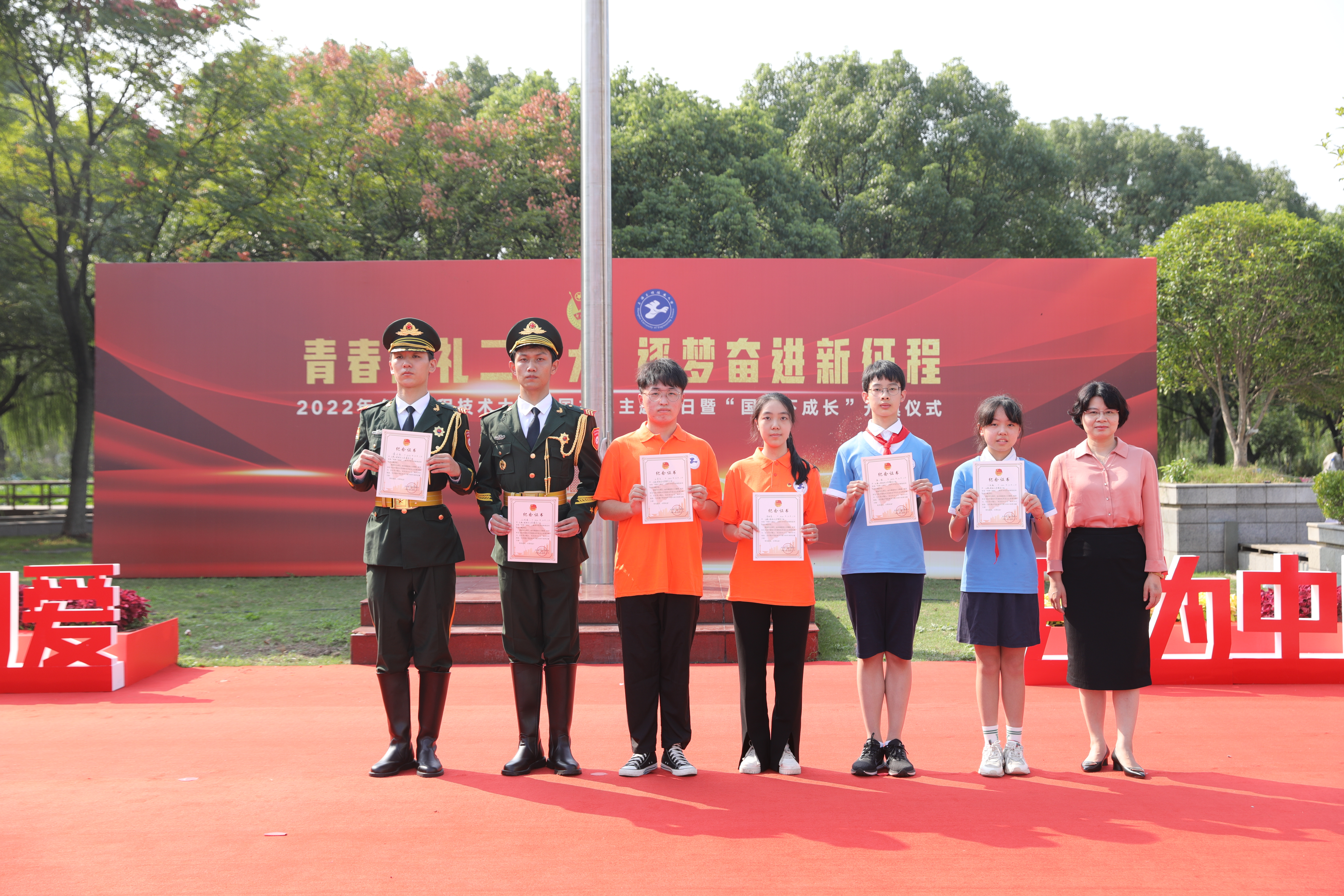 仪式上,俞涛校长为“青马工程”思想成长培训班学员、青春寻访团代表授旗;朱晓青副书记、副校长为青年代表、少先队代表颁发“国旗下成长”爱国主义纪念证书。
