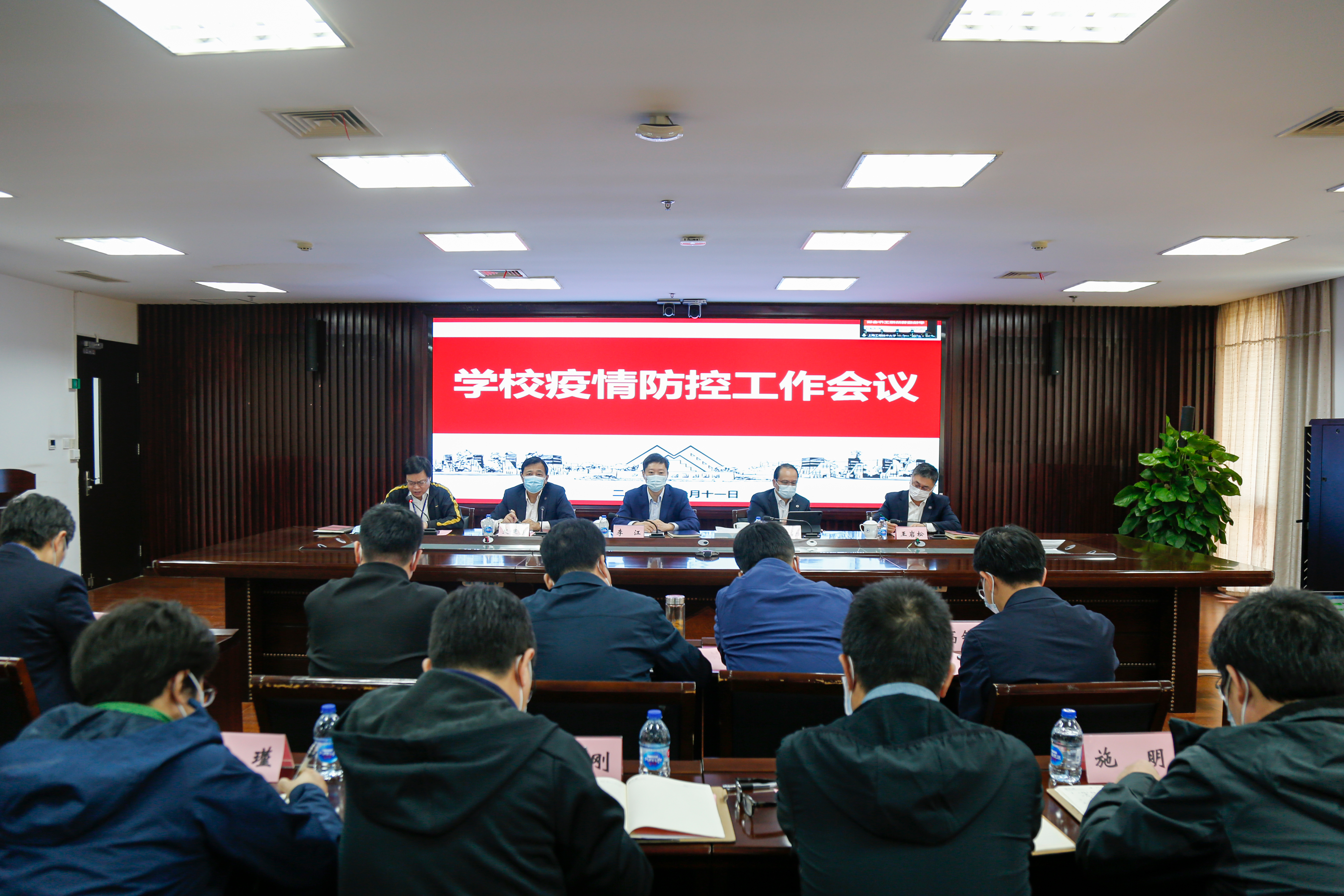 1011日下午,学校通过线上线下相结合的方式召开疫情防控工作会议。全体校领导班子成员,全体中层正职干部,疫情防控工作小组相关部门副职干部,二级学院副职干部,学生党员代表、志愿者干部代表、楼层长代表出席会议。会议由党委副书记史健勇主持。