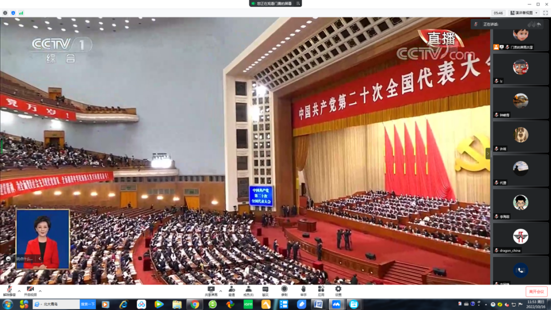 1016日,中国共产党第二十次全国代表大会在北京开幕。学校统一战线成员通过多种渠道收听收看大会开幕盛况,认真学习报告内容,并纷纷发表热烈讨论。大家表示作为高等教育工作者,深感责任重大、使命光荣;站在新的历史起点,要主动担当、积极作为;在实现中华民族伟大复兴的征程上,更好担负起为党育人、为国育才的使命和责任。