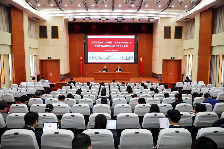 为深入学习贯彻党的二十大精神,1028日上午,上海工程技术大学党的二十大精神专题学习班在松江校区行政楼B301会议室正式开班。全国五一劳动奖章获得者、市委党校(上海行政学院)袁秉达教授应邀作党的二十大精神专题辅导报告。校党委书记李江,党委副书记、工会主席史健勇,党委副书记、纪委书记门妍萍,副校长王岩松出席学习会。全体中层干部采用线上线下结合方式参加学习。学习会由校党委副书记史健勇主持。