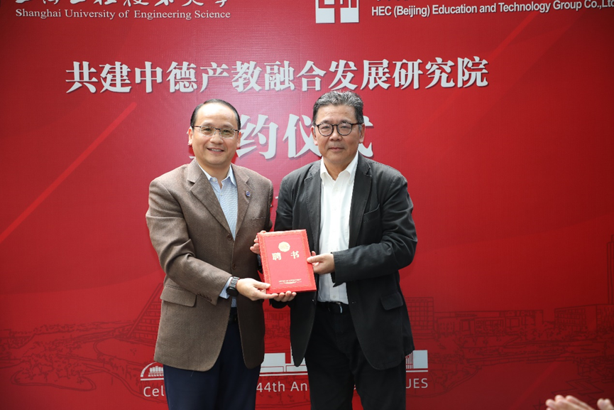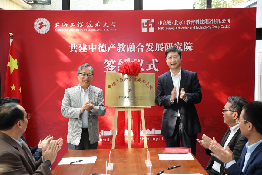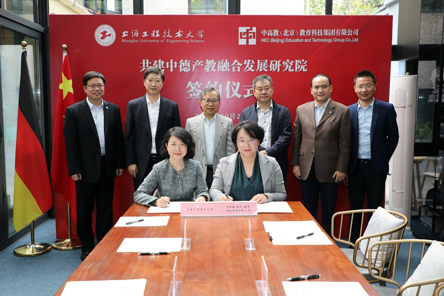 1029日,我校与中高教(北京)教育科技集团有限公司签订《共建中德产教融合发展研究院》协议,上海工程技术大学中德产教融合发展研究院正式成立。校党委书记李江,党委副书记、校长俞涛,副校长夏春明;上海现代服务业联合会会长郑惠强,教育部学校规划建设发展中心处长刘志敏,中高教(北京)教育科技集团有限公司总经理唐明出席签约揭牌仪式。活动由中高教(北京)教育科技集团有限公司总经理唐明主持。