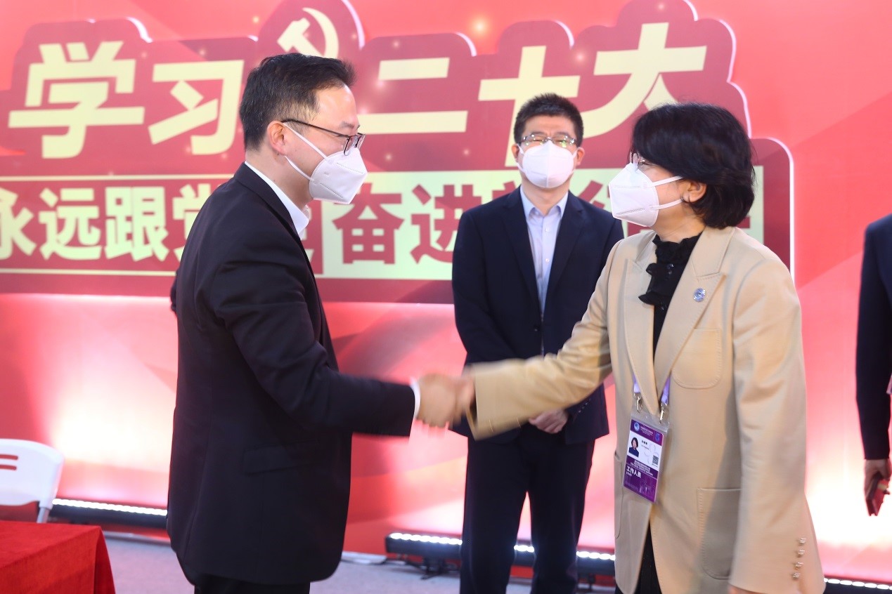 119日,校党委副书记、副校长朱晓青来到进博会现场,看望慰问奋斗在进博会第一线的程园“小叶子”。团市委副书记丁波与朱晓青副书记、副校长进行会面,丁波副书记向学校对进博会志愿服务工作的支持表示诚挚感谢,并对程园“小叶子”热情洋溢的志愿服务表示肯定。朱晓青副书记、副校长和志愿者们亲切交流,肯定了志愿者们坚守岗位的青春行动,并细心询问志愿者工作情况、食宿条件等,鼓励大家在志愿服务过程中学习国内外前沿知识,不断提升自己专业能力,打造“工程蓝”的名片。当天,在志愿者之家“信仰大厅”工程大志愿者还举行“青春志愿向进博,砥砺奋进新征程”学习党的二十大精神主题党团日活动,朱晓青副书记、副校长为小叶子讲师团成员颁发荣誉证书。