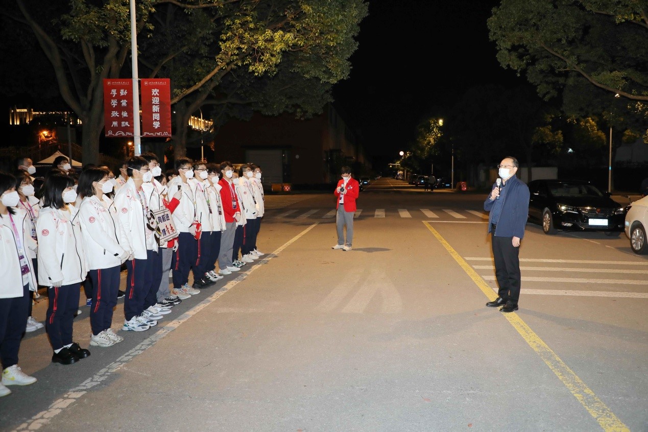 118日晚,校长俞涛来到松江校区进博志愿者闭环管理园区,对97名“小叶子”以逆行之姿为第五届进博会顺利召开提供服务保障表示肯定和感谢。俞校长指出,程园“小叶子”在参与进博会志愿服务期间要坚守疫情防控要求不松懈,以更加饱满的精神状态服务国家战略;要在志愿服务期间进行自我提升,勤学勤思,以过硬的本领助力国家战略实施;要在志愿服务期间以热情饱满的服务态度亮出程园青年的名片,以实际行动向世界展示蓬勃向上的中国青年形象。