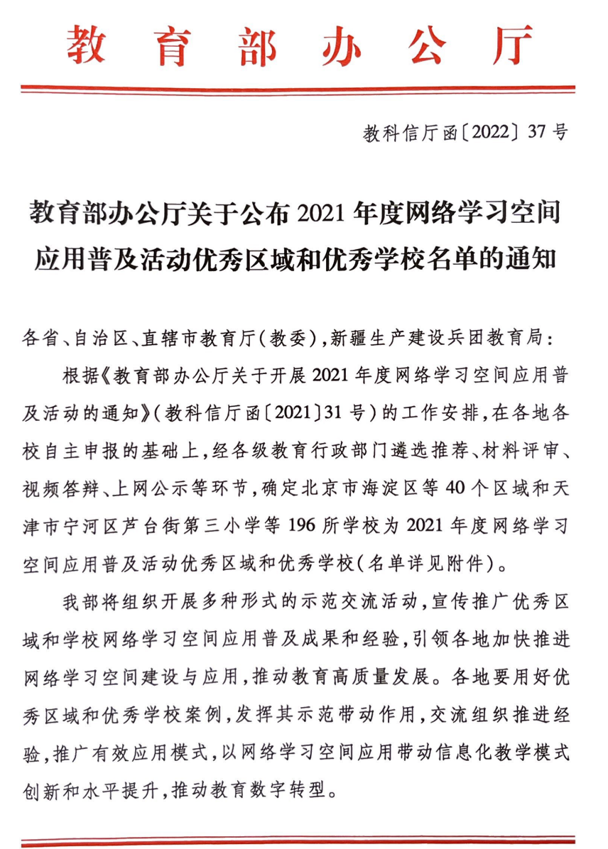 近日,教育部办公厅发布了《关于公布2021年度网络学习空间应用普及活动优秀区域和优秀学校名单的通知》(教科信厅函〔2022〕37号),我校获评“2021年度网络学习空间应用普及活动优秀学校”,上海市仅4所高校获此殊荣,我校是上海市唯一获评的市属高校。