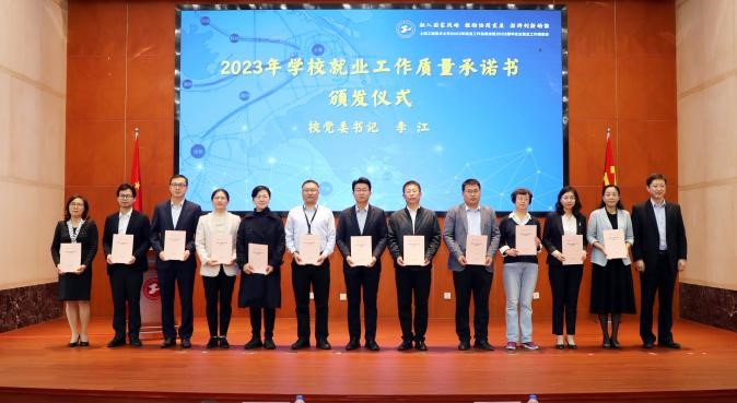 会上,校党委书记李江为长期关心、支持学校就业工作的上海市工商业联合会,G60科创走廊联席办公室,松江、长宁、虹口、青浦四区人力资源和社会保障局,松江区工商业联合会,上海市江苏、安徽、浙江商会等颁发了2022年学校就业工作特别贡献奖。向各学院负责人颁发了2023年就业工作质量承诺书,进一步明确工作任务、压实工作责任。