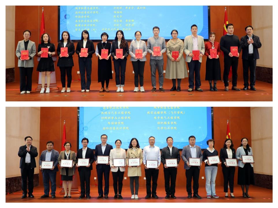 夏春明副校长为荣获2022年学校就业工作先进个人的教师代表和荣获2022年学校就业工作先进集体的学院颁奖。