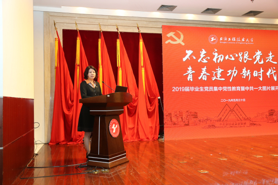 本次毕业生党员集中党性教育活动与中共一大纪念馆合作,引进了《日出东方——近代上海与中国共产党的创建》图片展。会上,中共一大会址纪念馆副馆长、研究馆员徐云根做了“不忘初心”专题微党课,他结合“中共创建和一大代表的人生轨迹”勉励青年党员要坚定理想信念、勤奋不懈、勇于在实践中锻炼成长。